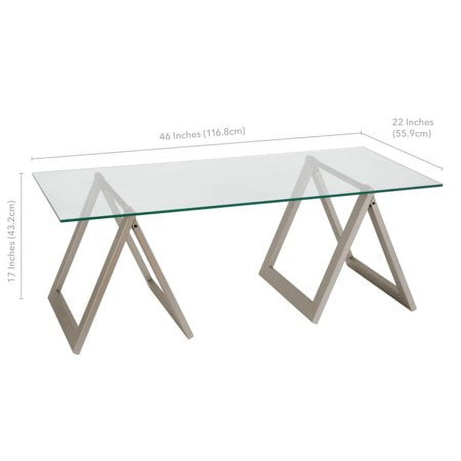 The hand-crafted finish is applied to the steel frame in a variety of options including blackened bronze and cool silver nickel. Table Dimensions: 17″ H x 46″ L x 22″ W Premium materials have been used in making this table: tempered glass throughout the tabletop while a steel frame ensures optimal sturdiness. Made from high-quality construction, avoiding inexpensive materials results in an heirloom-quality piece of furniture for half the price. Geometric, modern design gives this coffee table to fit seamlessly into any space, whether you’re aiming for a Hollywood-inspired feel or farmhouse comfort, this glass accent table can do it all. It’s perfect for your living room, kitchen, home office, den, parlor, or basement and can also be used as a bedroom table, nightstand table, kid’s room table, living room table, dining room table, reading table, office table, task table, or dorm room table. Features versatile design, chic design inspired by mid-century modern designers, it can easily transform into a contemporary table, clean line table, mid-century modern table, modern design table, urban modern table, transitional table, modern farmhouse table, industrial table, minimalist table, Scandinavian table, traditional table, Hollywood Glam table, Coastal table, Hollywood Regency table, eclectic table, modern country table, Art Deco table, Asian Zen table, Feng Shui table, chic table. Features easy assembly. All tools included with step-by-step instructions provided for full furniture set-up. A hand-crafted nickel finish is applied to the steel frame. Tempered glass top. Clean with a soft, dry cloth; no harsh chemicals or abrasive cleaning materials. Weight capacity can support up to 50 LBS.