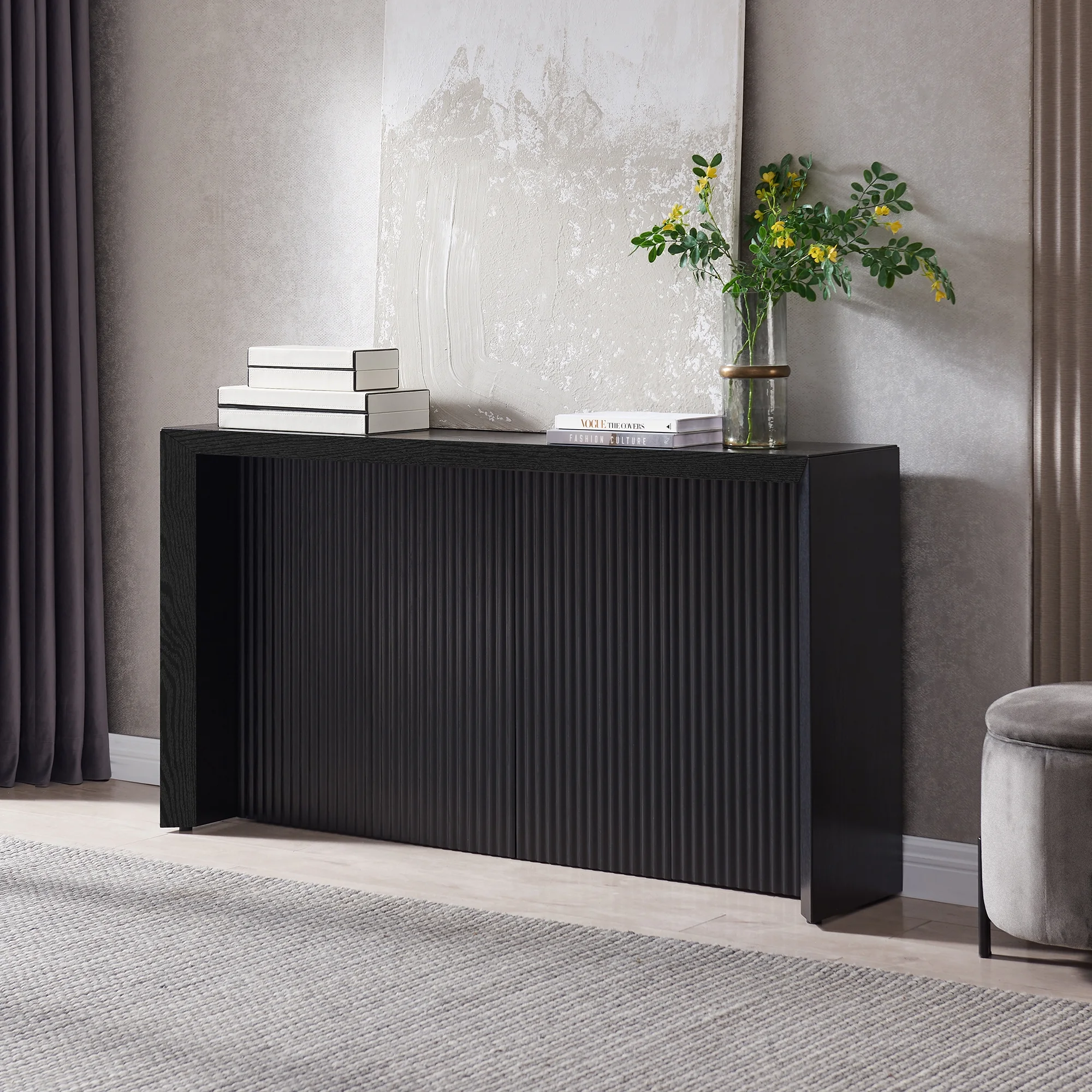 Evelyn&Zoe Modern/Contemporary 56″ Wide Black Grain Console Table