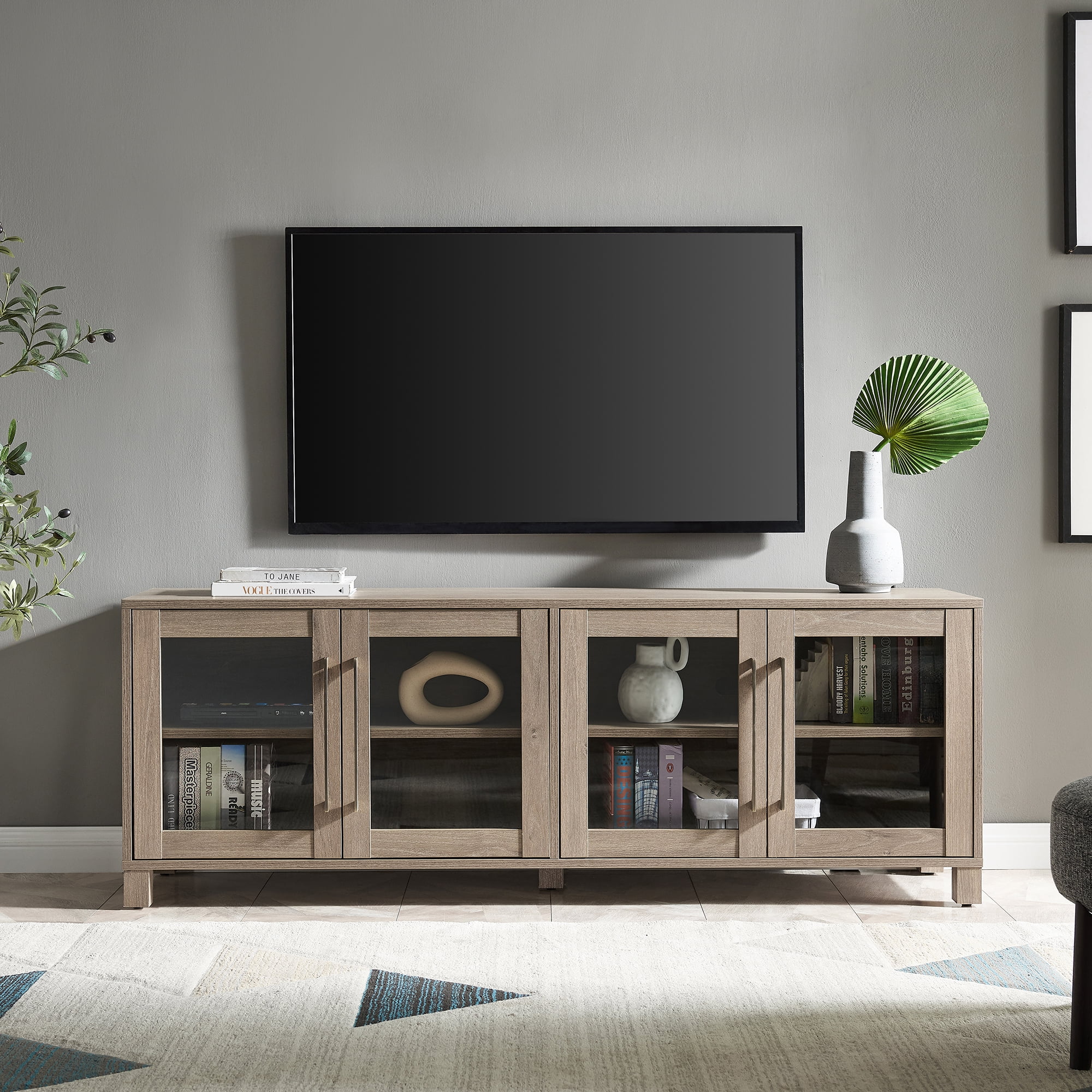 Evelyn&Zoe Quincy Rectangular TV Stand for TV’s up to 75″, Antiqued Gray