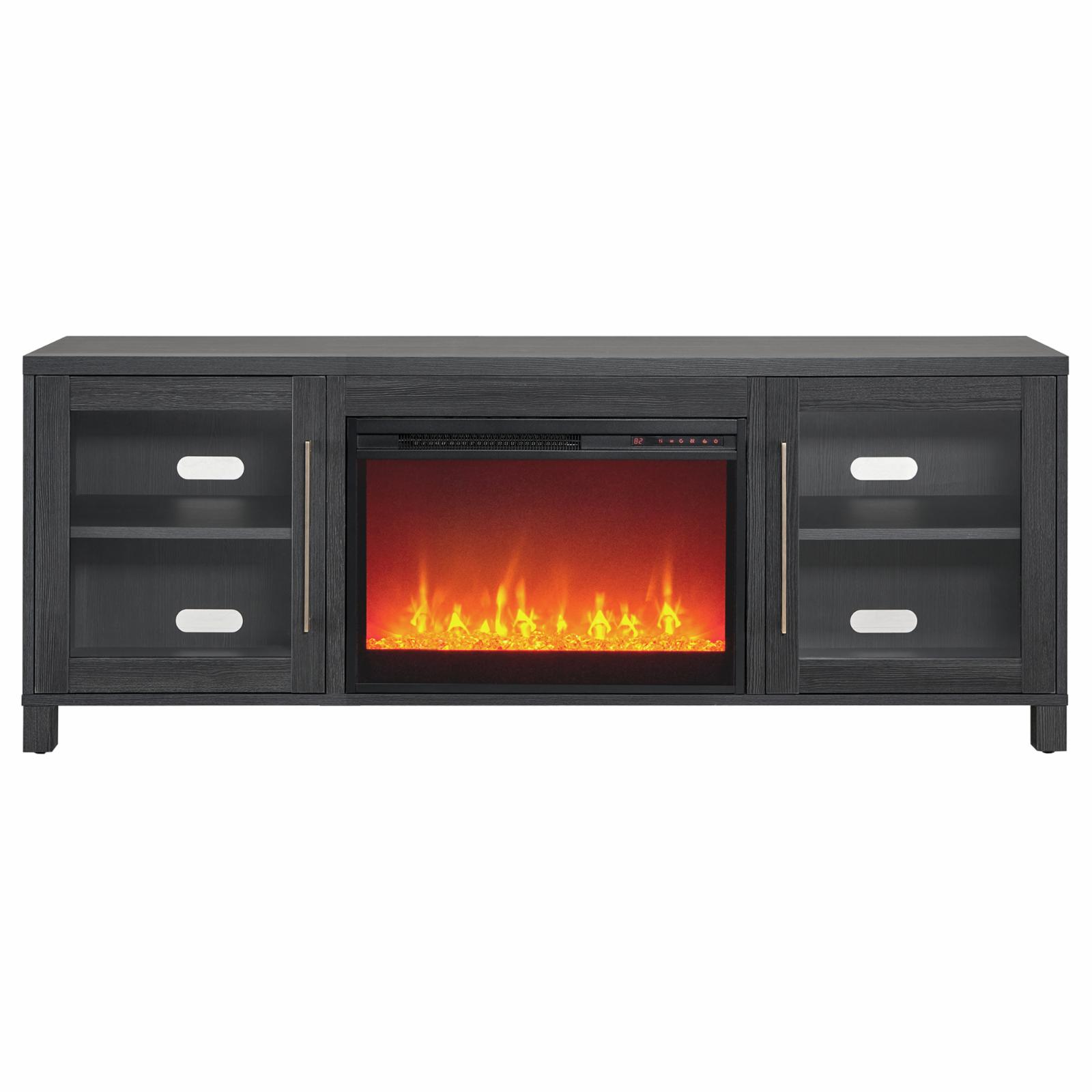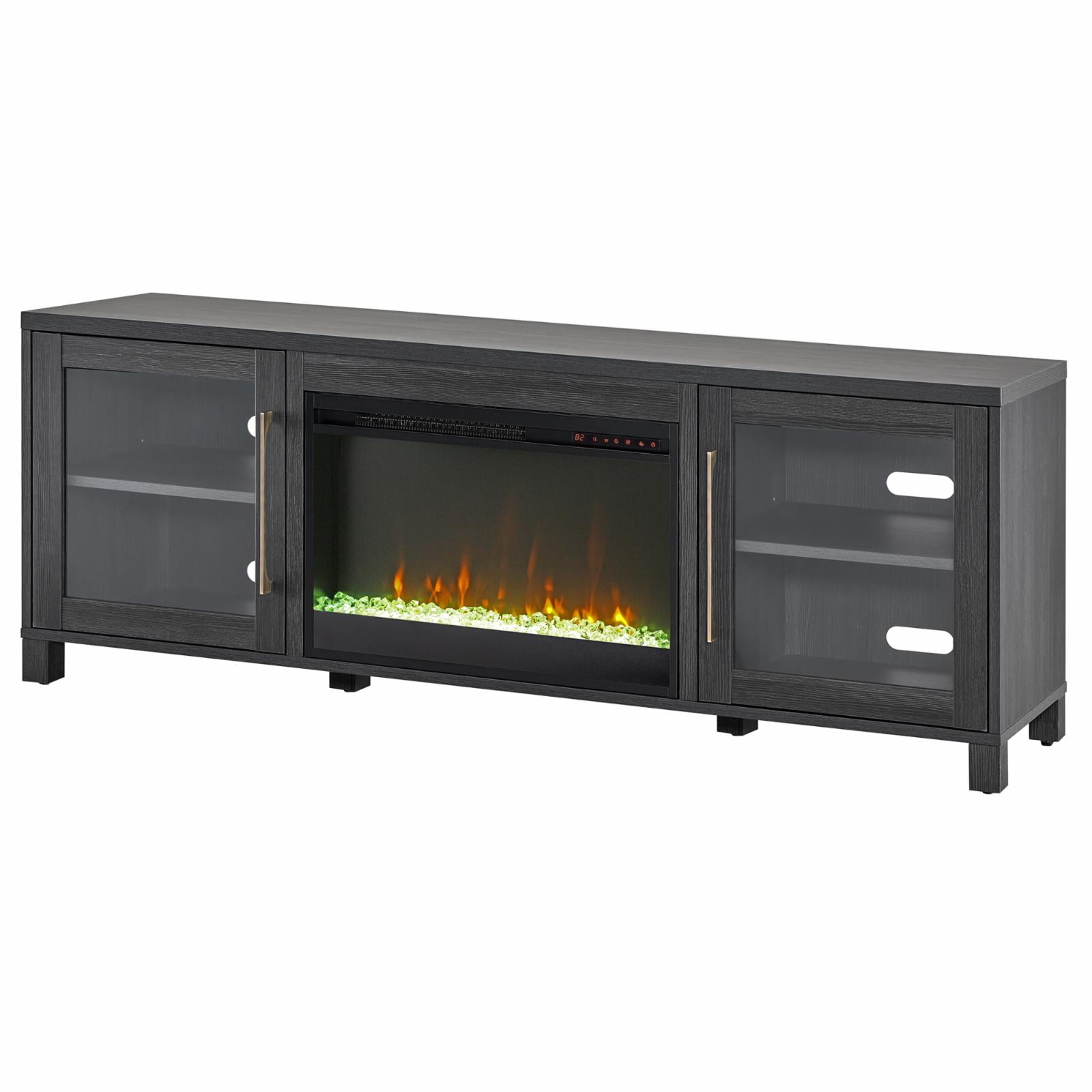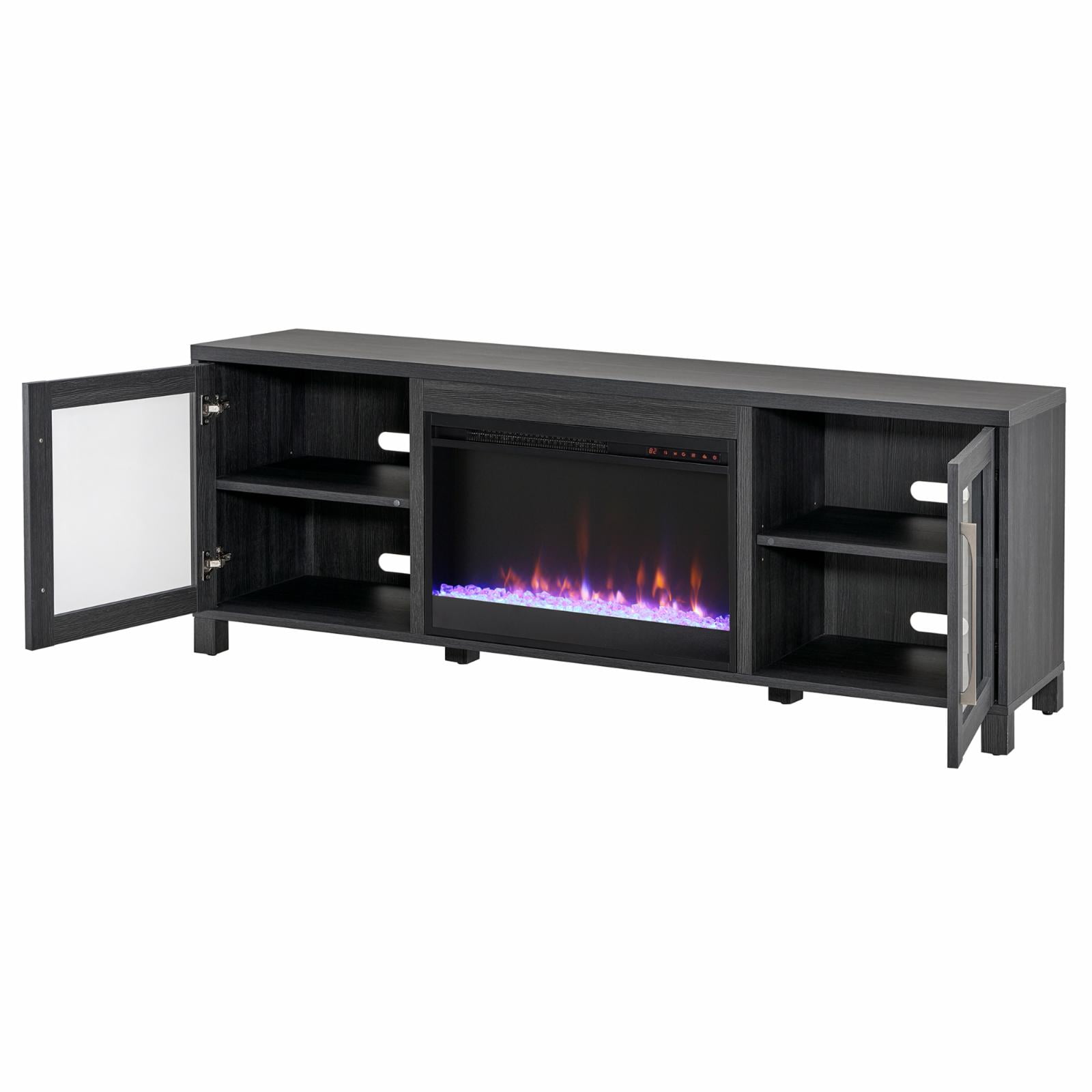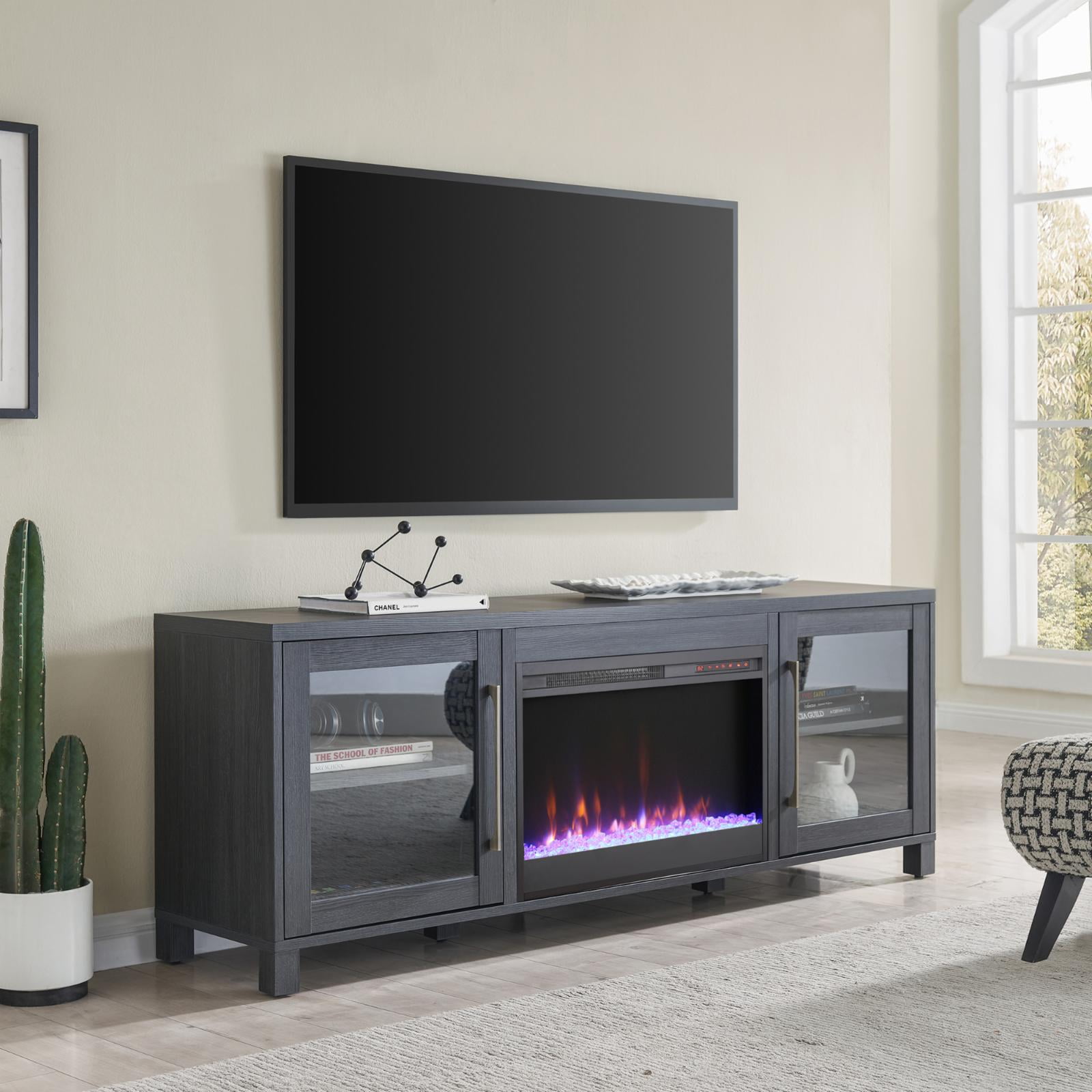 Evelyn&Zoe Quincy Rectangular TV Stand with 26″ Crystal Fireplace for TV’s up to 75″, Charcoal Gray