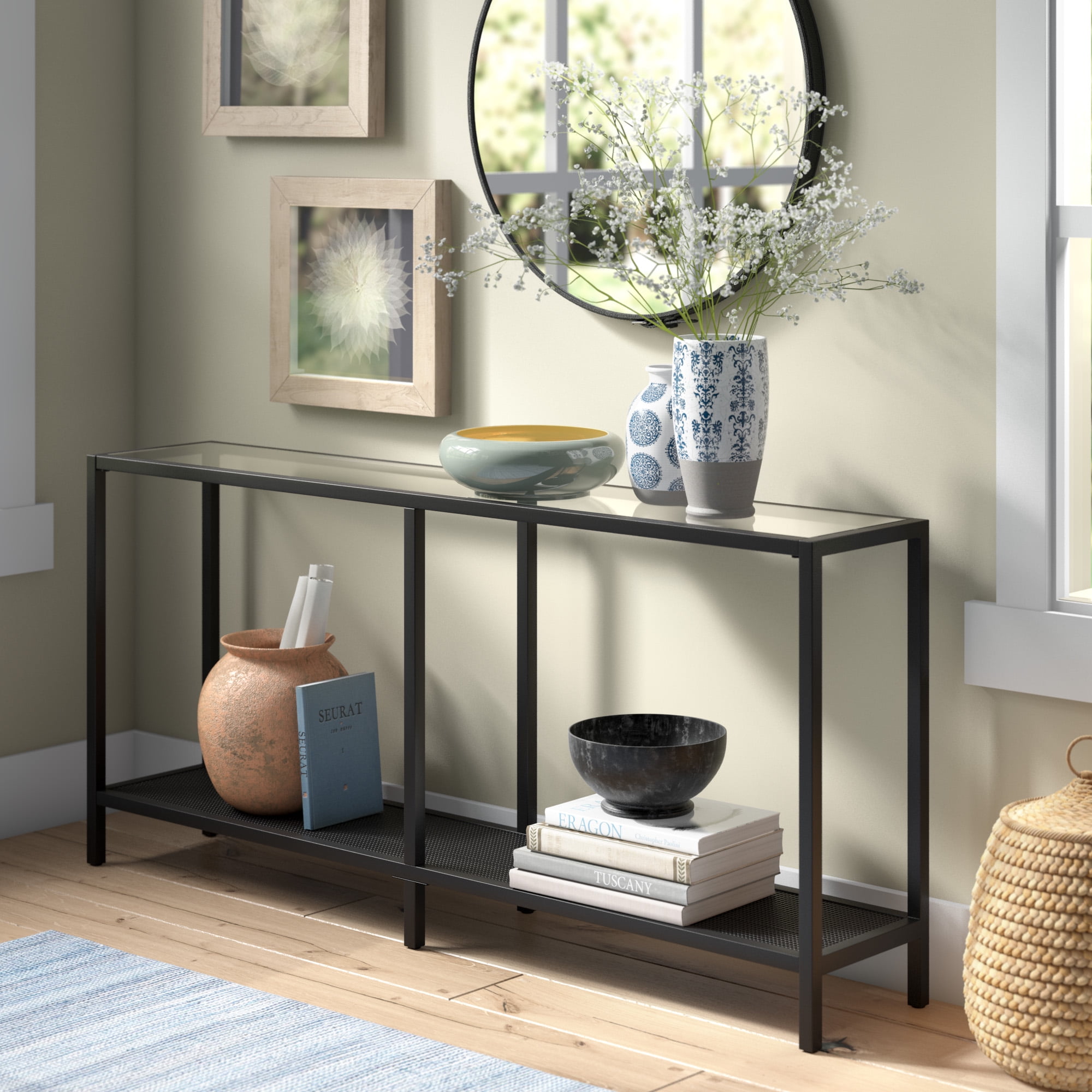 Evelyn&Zoe Rigan 64″ Wide Rectangular Console Table, Blackened Bronze