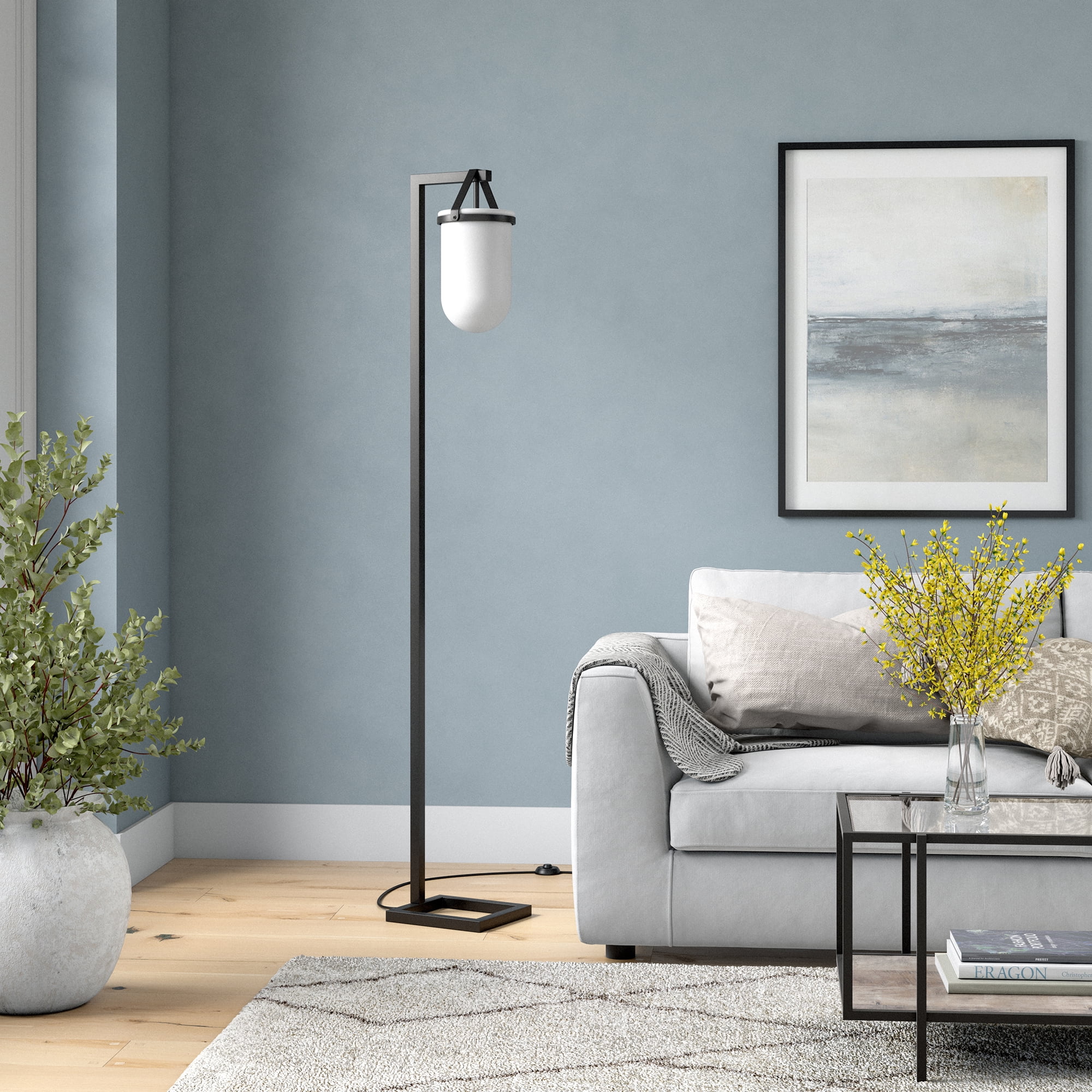 Evelyn&Zoe Shiloh 68″ Tall Floor Lamp with Glass Shade, Blackened Bronze/White Milk