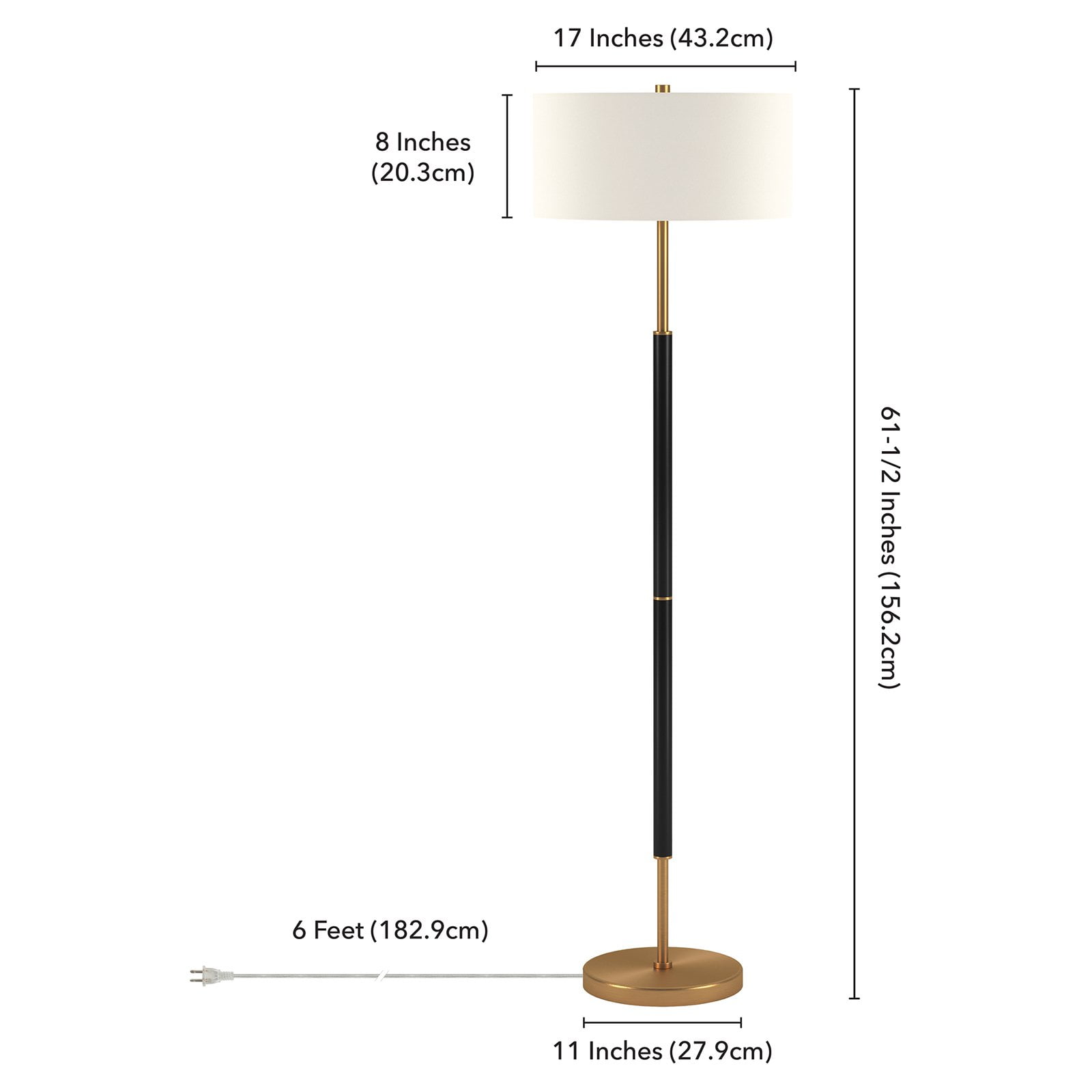 Brighten up your living room or bedroom ensemble with this industrial-inspired table lamp. Crafted from metal, it features a two-tone base in black, nickel or brass with white, blue, gray, nickel or matte black finish for a sleek touch. The fabric drum shade rounds out the design making it an ideal addition to just about any living room, bedroom, dining room, office, or study Features: Handcrafted finish in two complementary tones It is paired with a French Drum shade. The shade is in a crisp chiffon color and is made of 100% linen with polystyrene lining for durability. Fits seamlessly in any space. Compatible with smart light bulbs such as Philips Hue, LIFX, IOTTY, TP-Link, Texsens, Flux, Samsung SmartThings, WiZ, and C by GE. Bulb is not included. Specifications: Product Weight: 12.5 lbs Target Audience: Adult (18 Years and Up) Assembly details: Adult Assembly Required, Tools Not Provided Warranty Description: 10 Day Limited Warranty Frame Material: Metal