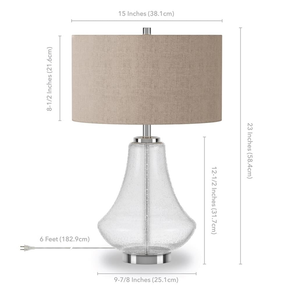 Compatible with smart light bulbs such as Philips Hue, LIFX, IOTTY, TP-Link, Texsens, Flux, Samsung SmartThings, WiZ, and C by GE. Bulb is not included. Uses an E26 base bulb with a max wattage of 60 watts. E26 is considered the standard, basic light bulb. And the lamp is compatible with energy efficient LED bulbs effectively putting out much more light per watt. Ideal use for bedroom lamp, nightstand lamp, kid’s room lamp, living room lamp, dining room lamp, reading lamp, living room lamp, office lamp, task lamp, table lamp, dorm room lamp, buffet table lamp, side table lamp, etc. Premium materials have been used making this lamp: linen in the shade, glass in the frame and base, UL certified wiring components. And the finishes are hand done: the brass finish is a rich brushed brass finish, the blackened bronze finish is a deep dark brown that is nearly black to the eye, and the nickel is a brushed nickel giving the lamp a silver sheen. Features versatile design, chic design inspired by mid-century modern designers, it can easily transform into a contemporary lamp, clean line lamp, mid-century modern lamp, modern design lamp, urban modern lamp, transitional lamp, modern farmhouse lamp, industrial lamp, minimalist lamp, Scandinavian lamp, traditional lamp, Hollywood Glam Lamp, Coastal lamp, Hollywood Regency lamp, eclectic lamp, modern country lamp, Art Deco lamp, Asian Zen lamp, Feng Shui lamp, chic lamp. Handcrafted in seeded glass, the polished nickel hardware keeps the earthy refined. The shade is in a flax color and is made of 100% linen with polystyrene lining for durability. Rated for one 60W incandescent bulb; 9W LED bulb, 13W fluorescent (CFL) bulb, or 9W self-ballasted LED bulb. E26-base bulb. Includes a 6 ft. cord. Clean with a soft, dry cloth; no harsh chemicals or abrasive cleaning materials.