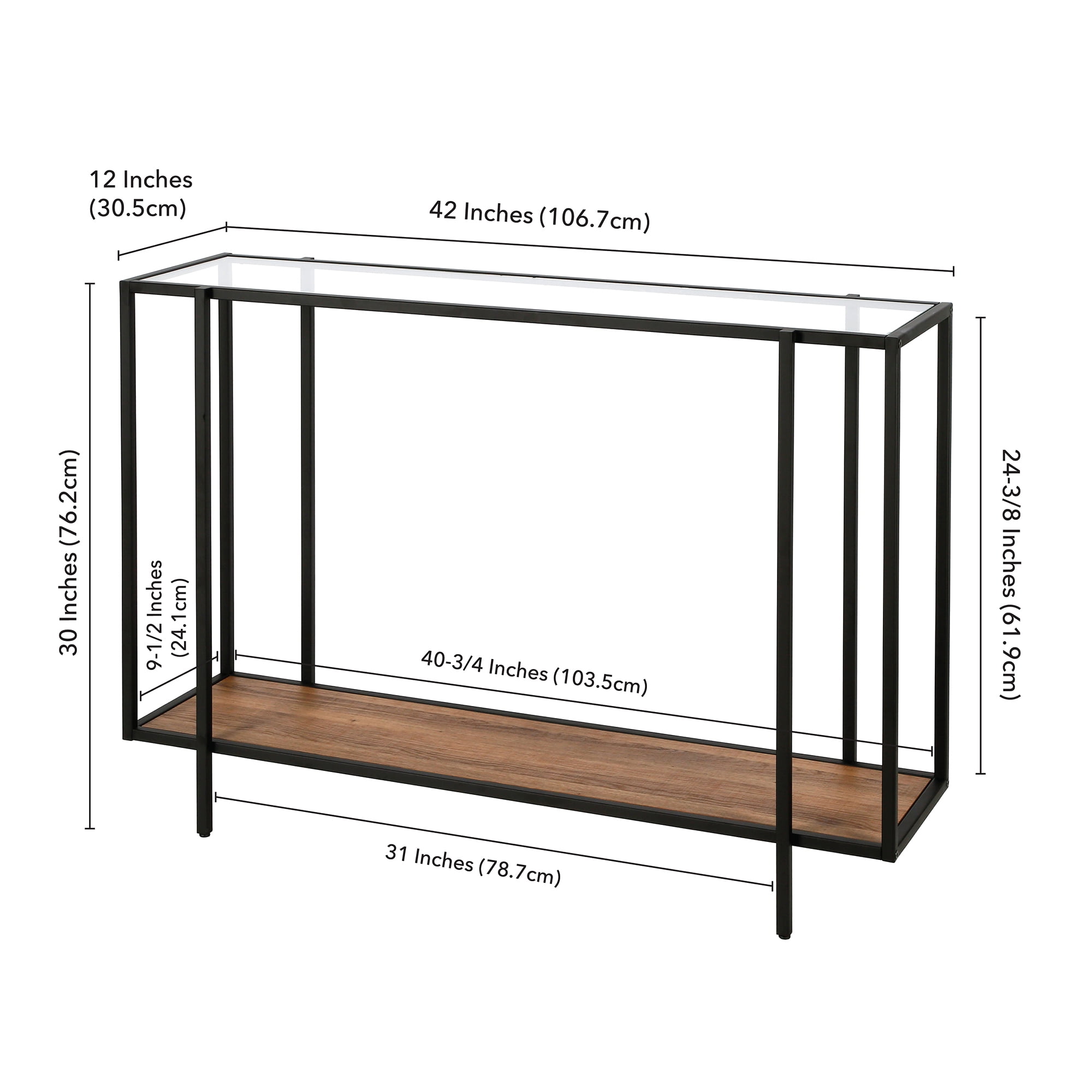 Evelyn&Zoe Vireo 42″ Wide Rectangular Console Table with MDF Shelf, Blackened Bronze/Rustic Oak