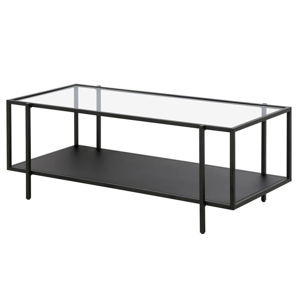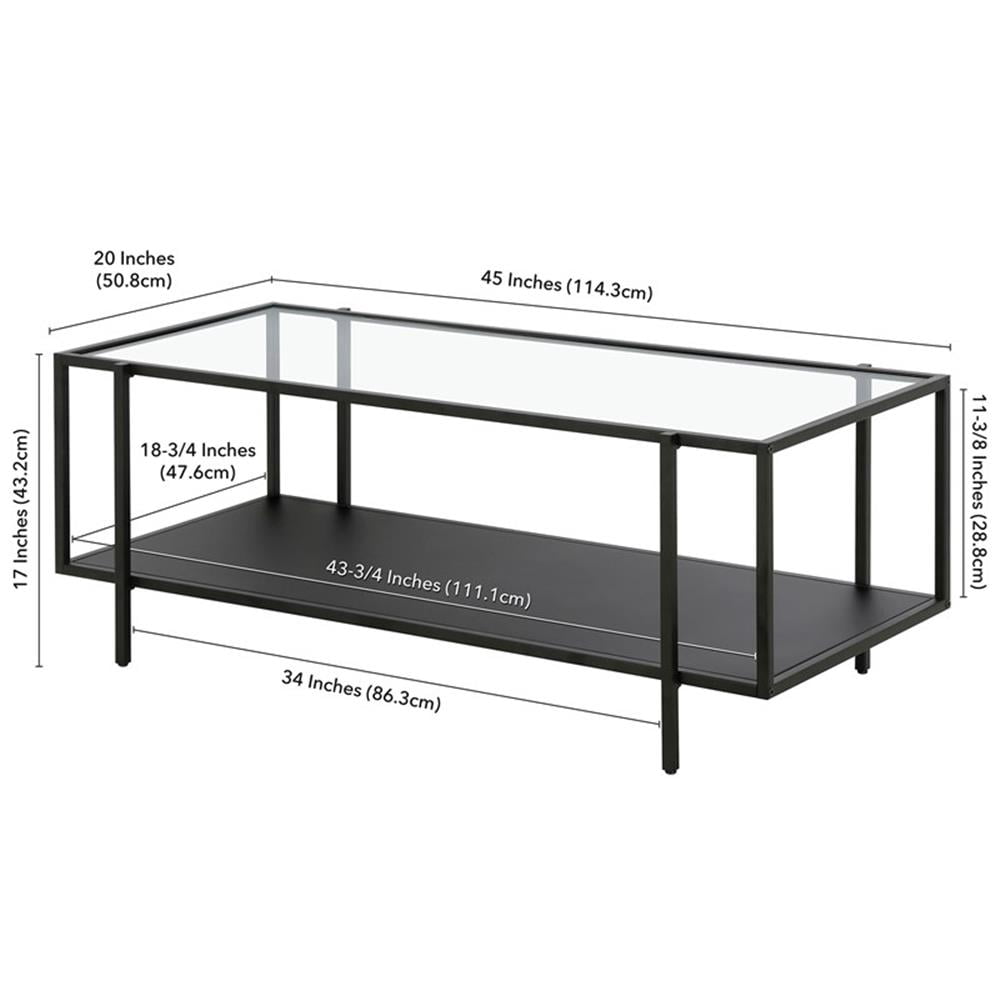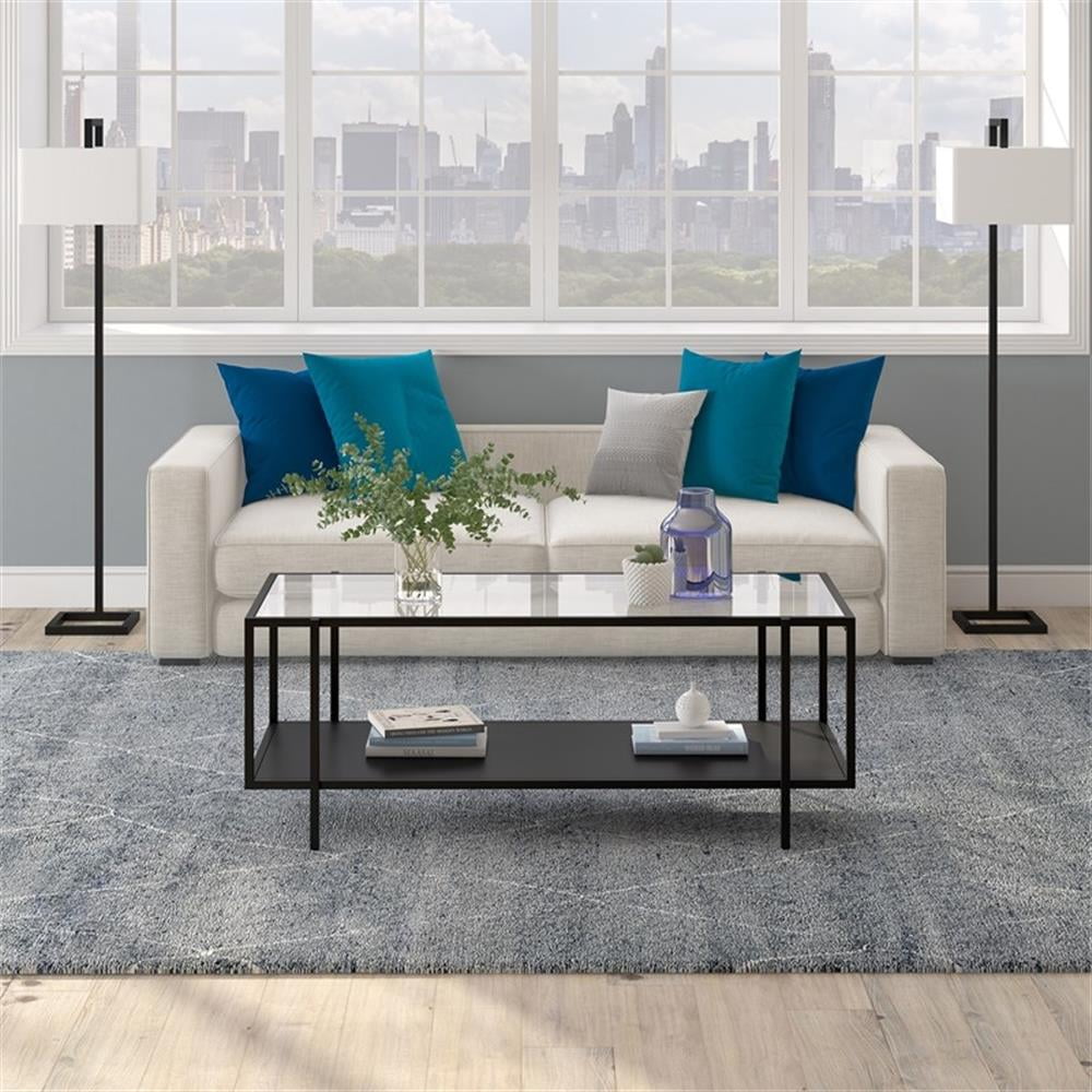 Evelyn&Zoe Vireo 45″ Wide Rectangular Coffee Table with Metal Shelf in Blackened Bronze