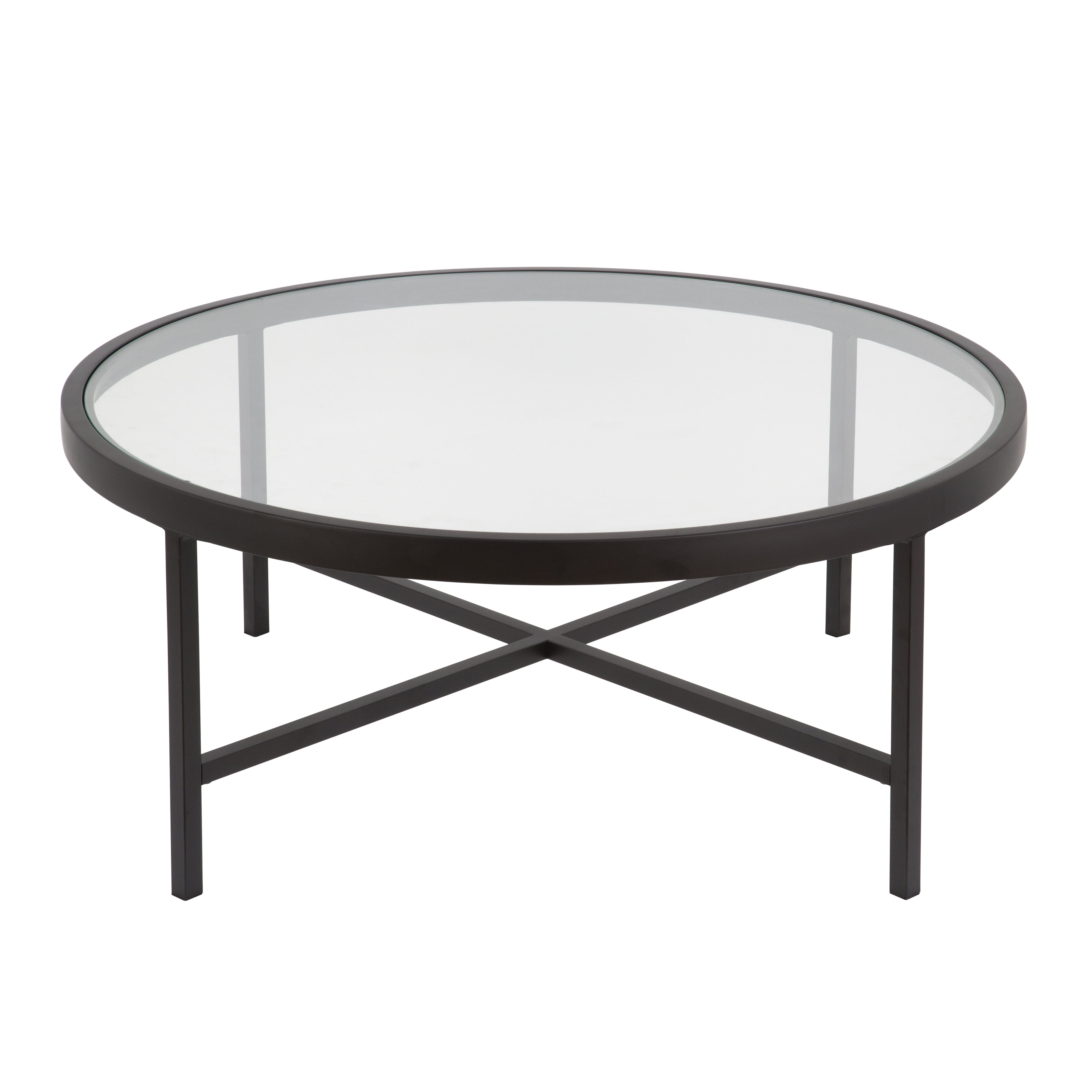 Evelyn&Zoe Xivil 36″ Wide Round Coffee Table with Glass Top, Blackened Bronze