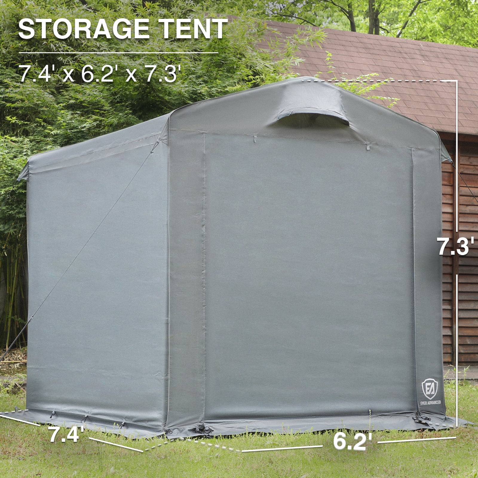 EVER ADVANCED 7.4×6.2 Outdoor Storage Tent – Waterproof Carport Canopy with Vents – Temporary Shelter for Bike & Motorcycle – Grey