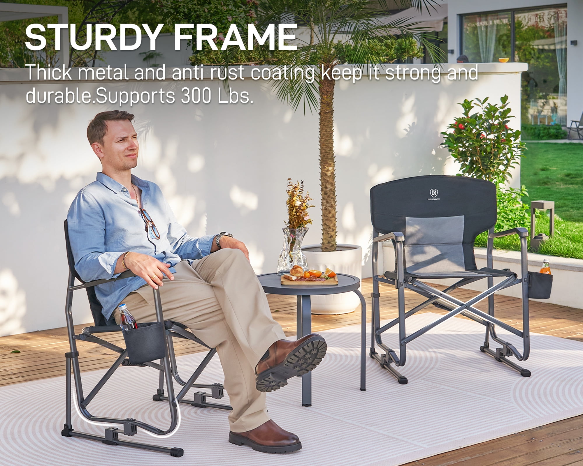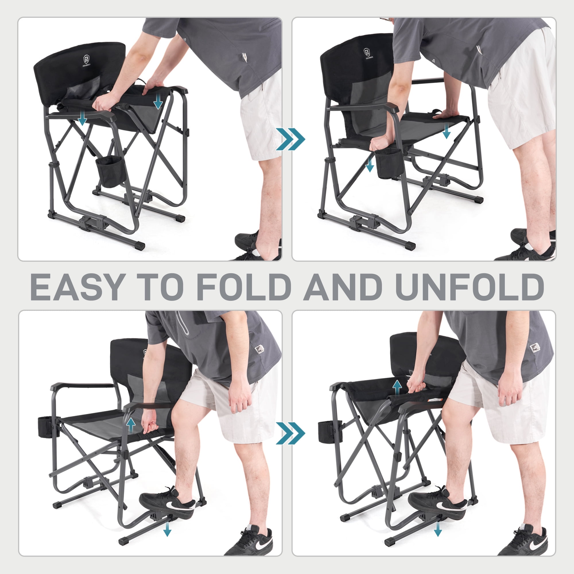 EVER ADVANCED Rocking Camping Chair, Folding Swing Chair with Stand,Black