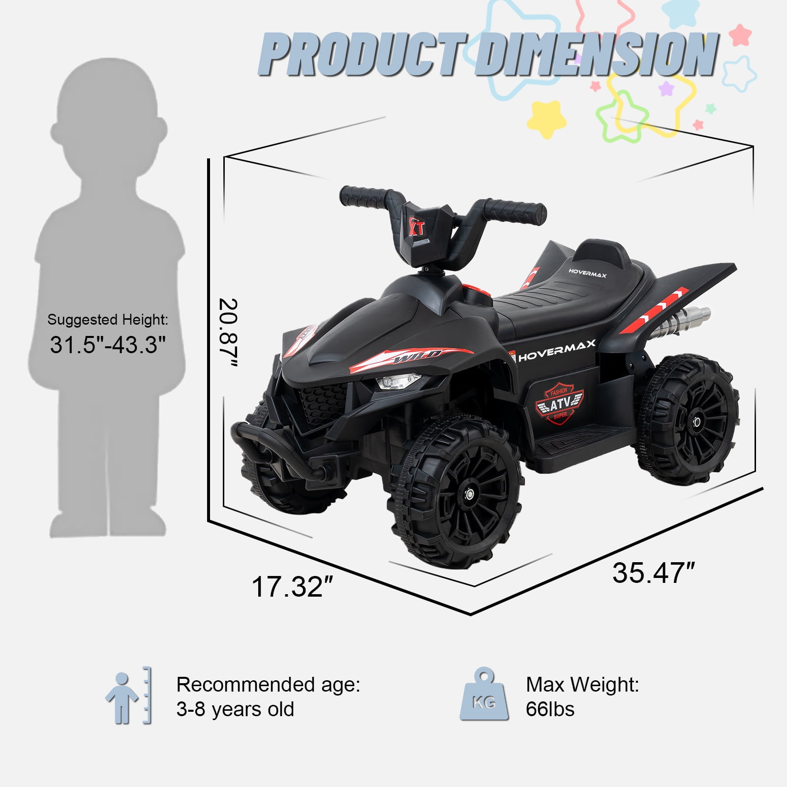 HOVERMAX 12V Kids Ride on ATV, 4 Wheeler Quad Toy Vehicle for Kids Aged 3+