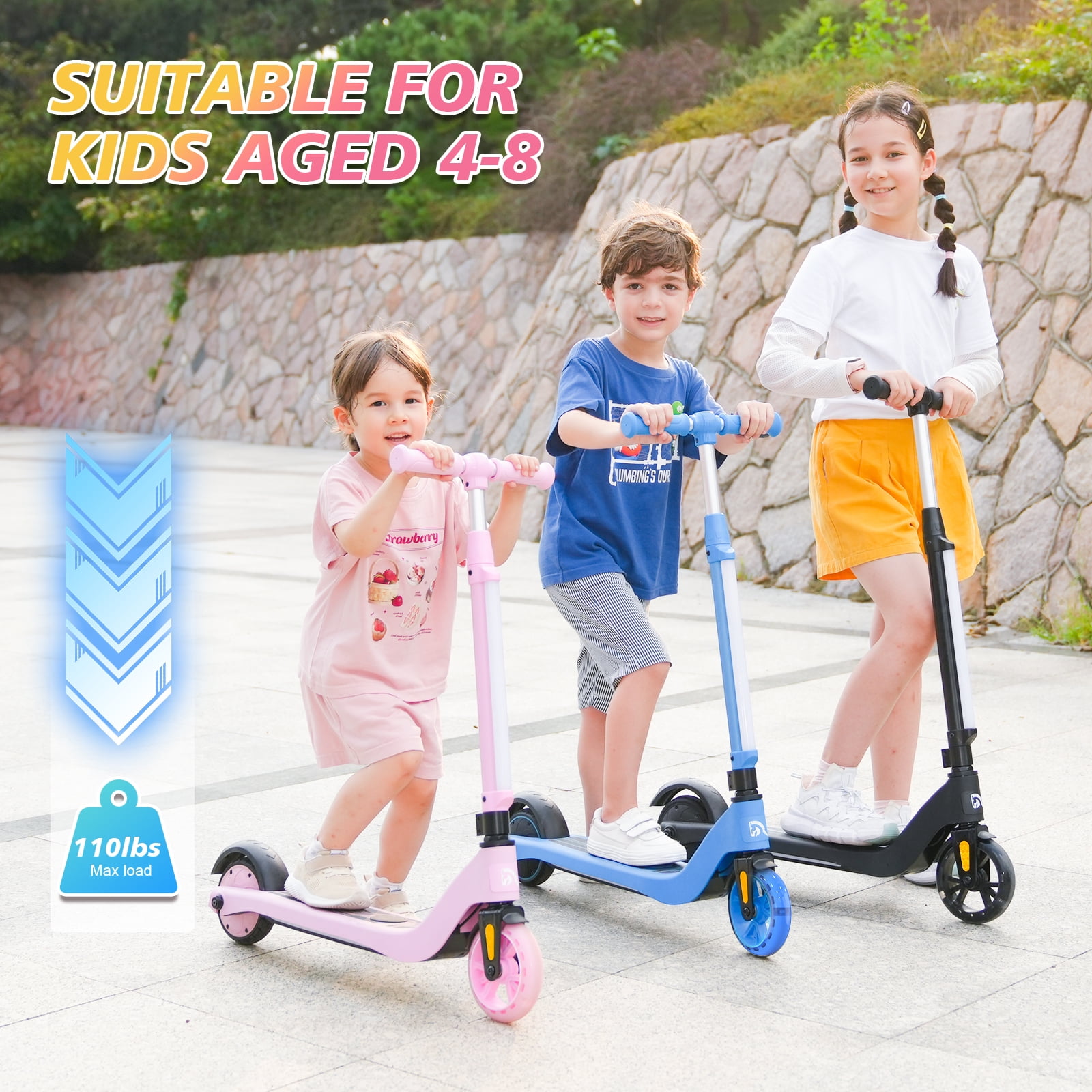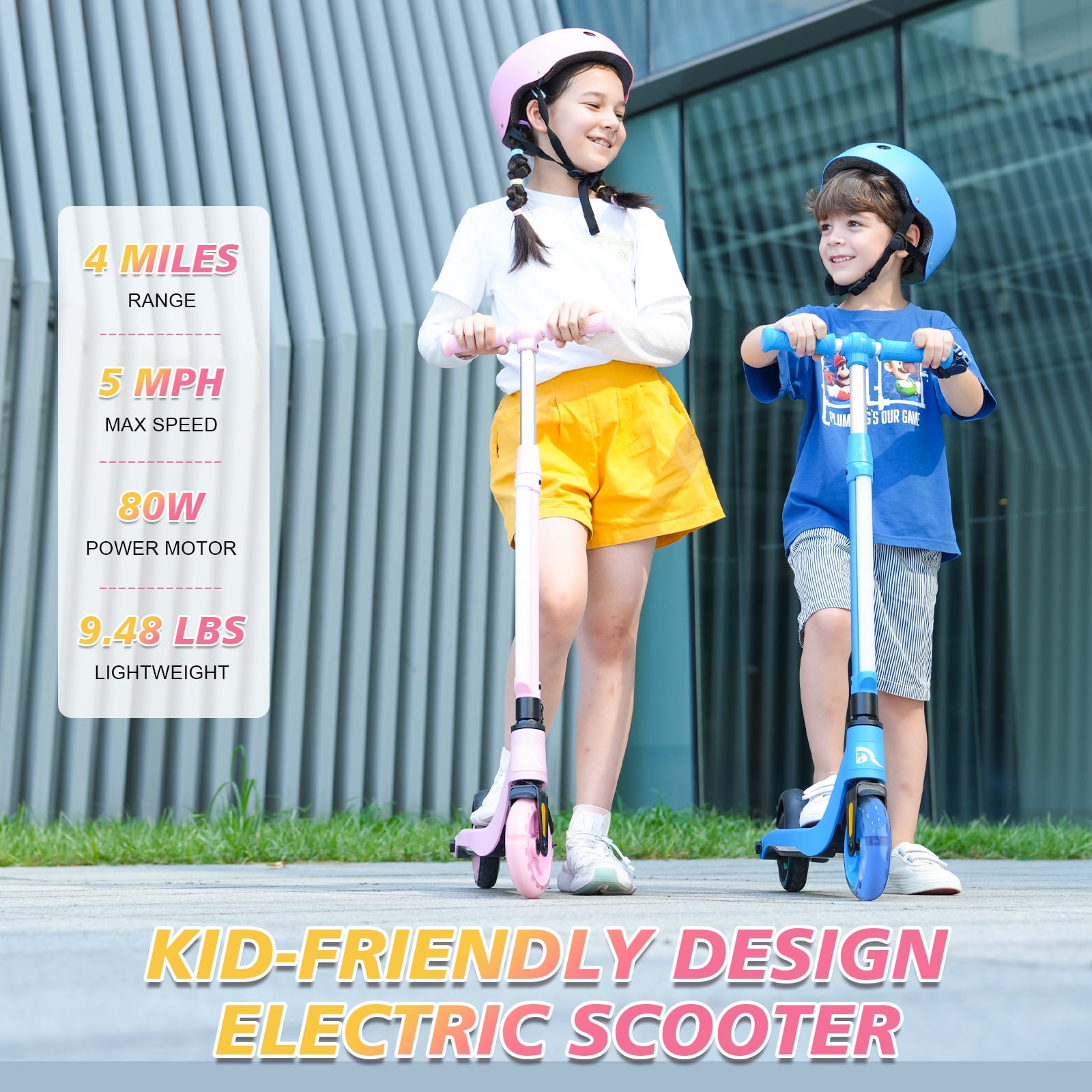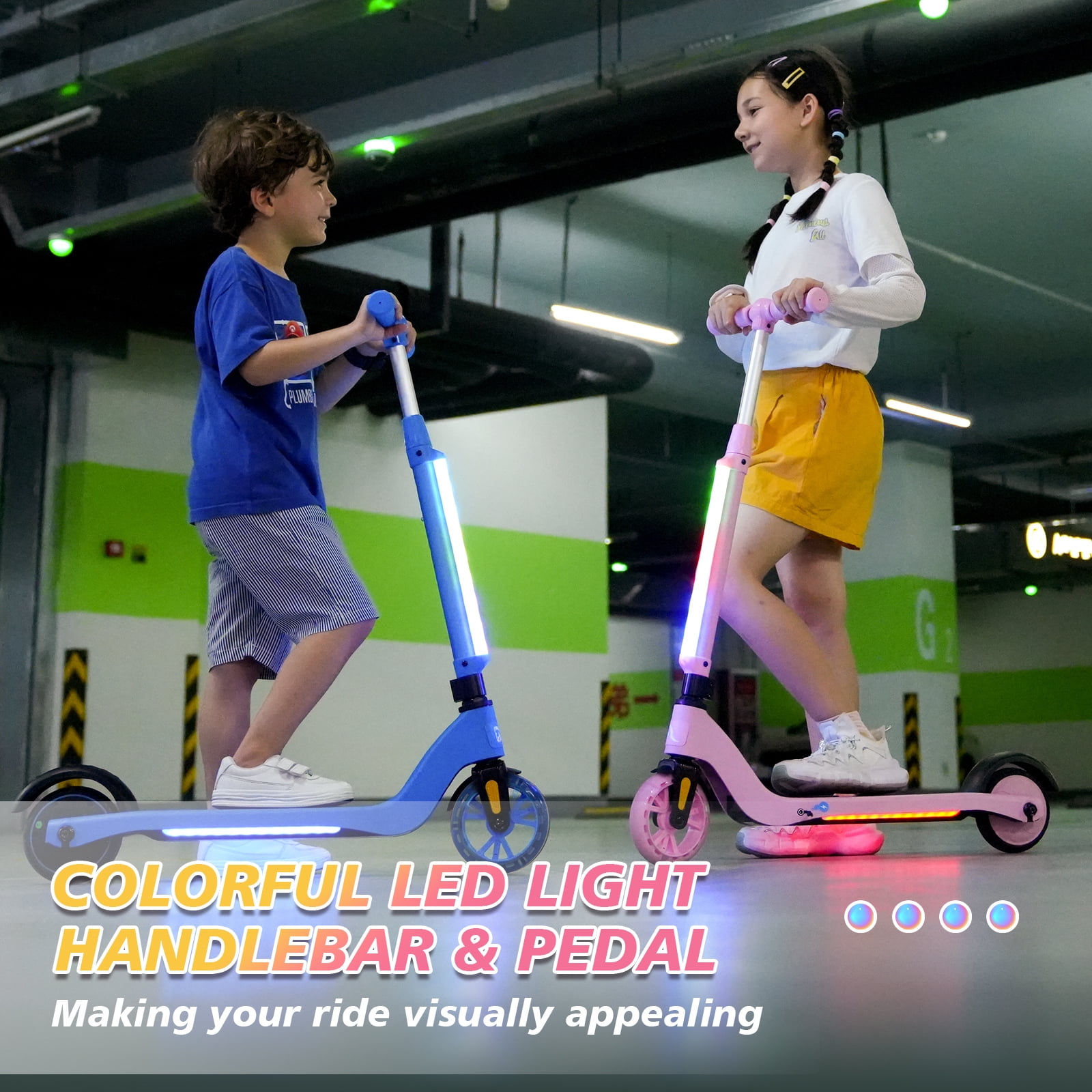 EVERCROSS EV05C Kids Electric Scooter – a funny ride that will delight kids aged 4-8! Powered by an 80W motor and a 16.8V 2.6 Ah lithium battery, this scooter offers 40 minutes of continuous riding fun. The fantastic LED headlight and neon LED pedal not only look cool but also enhance safety for evening rides. With a height-adjustable handlebar (28-36 inches), the scooter can grow with your child, ensuring years of enjoyment. The light-up 5.5″ PU front wheel and 5.3″ rear wheel provide a smooth ride for riders up to 110 lbs. Plus, the EV05C doubles the fun, functioning as both an electric scooter and a kick scooter, reaching speeds of up to 5 mph. Assembly is a breeze, and the scooter is ready to go in no time! (Note: Maximum speed and range per charge may vary based on rider weight, riding surface, incline, ambient temperature, battery level, and riding style.)Gift your child the joy of gliding with the EVERCROSS EV05C Kids Electric Scooter today!