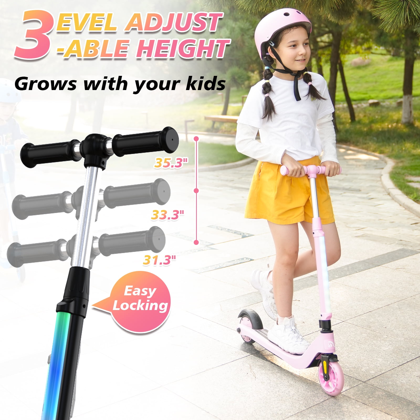 Easy to Carry and Use Convenient 3-level adjustable height to suit your child as grown (28-36 inch)