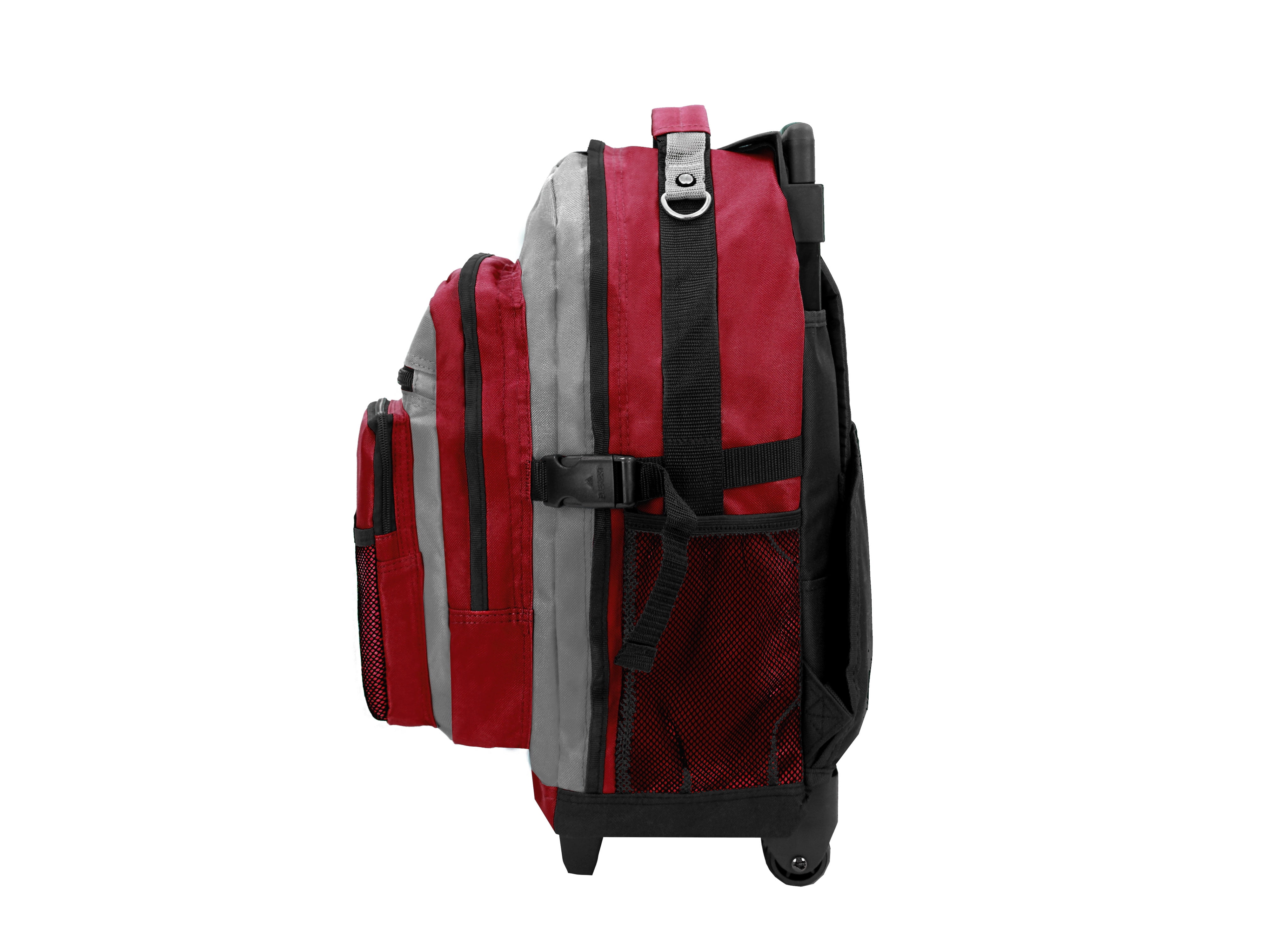 Large main compartment Five front and two side pockets Small item holder and compression straps Deluxe collection Product Type: Travel Backpack Material: Fabric Wheeled: Yes Age: Adult Overall Height – Top to Bottom: 21” Overall Width – Side to Side: 13.5” Overall Depth – Front to Back: 12” Overall Product Weight: 4.5 lbs
