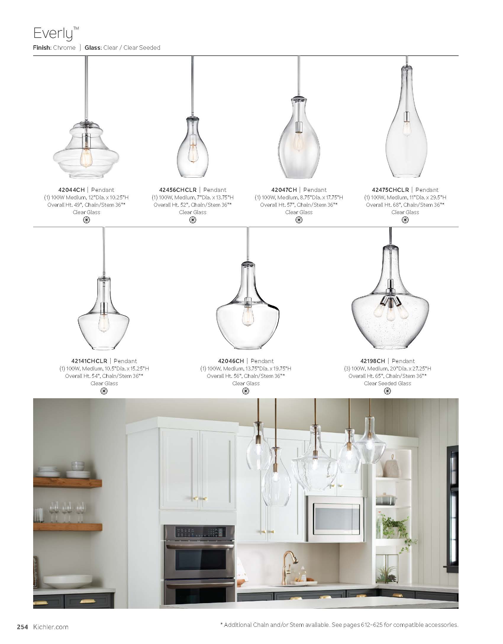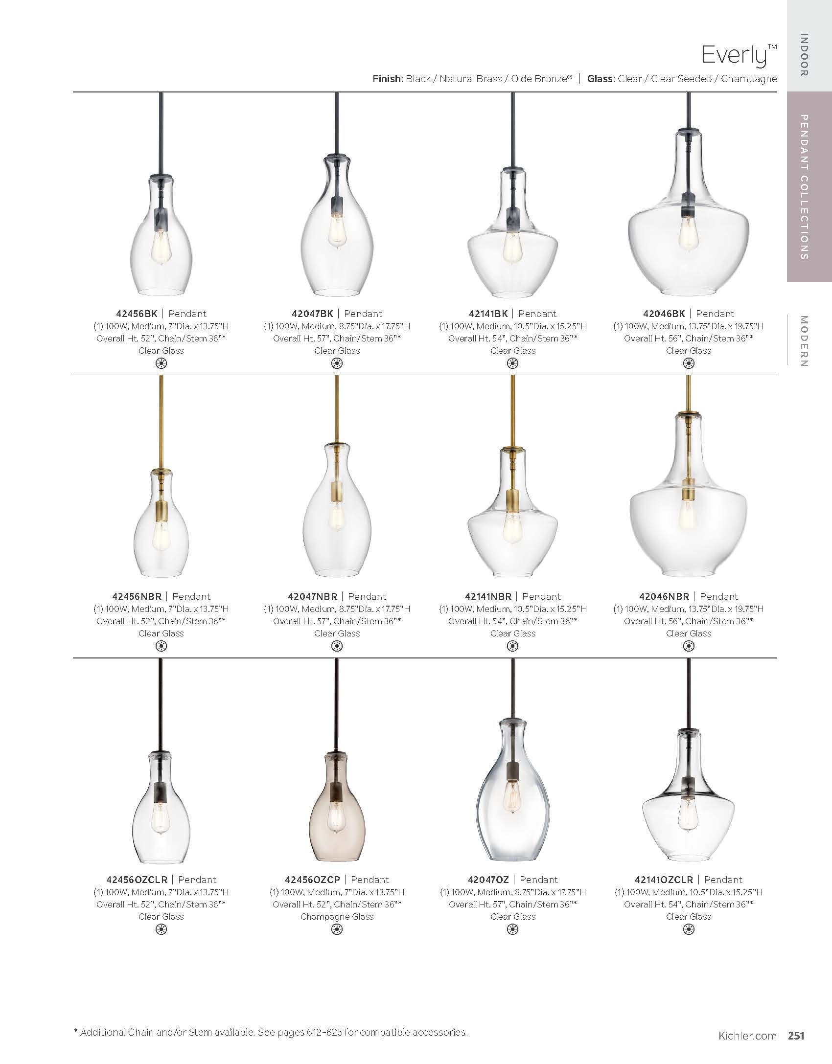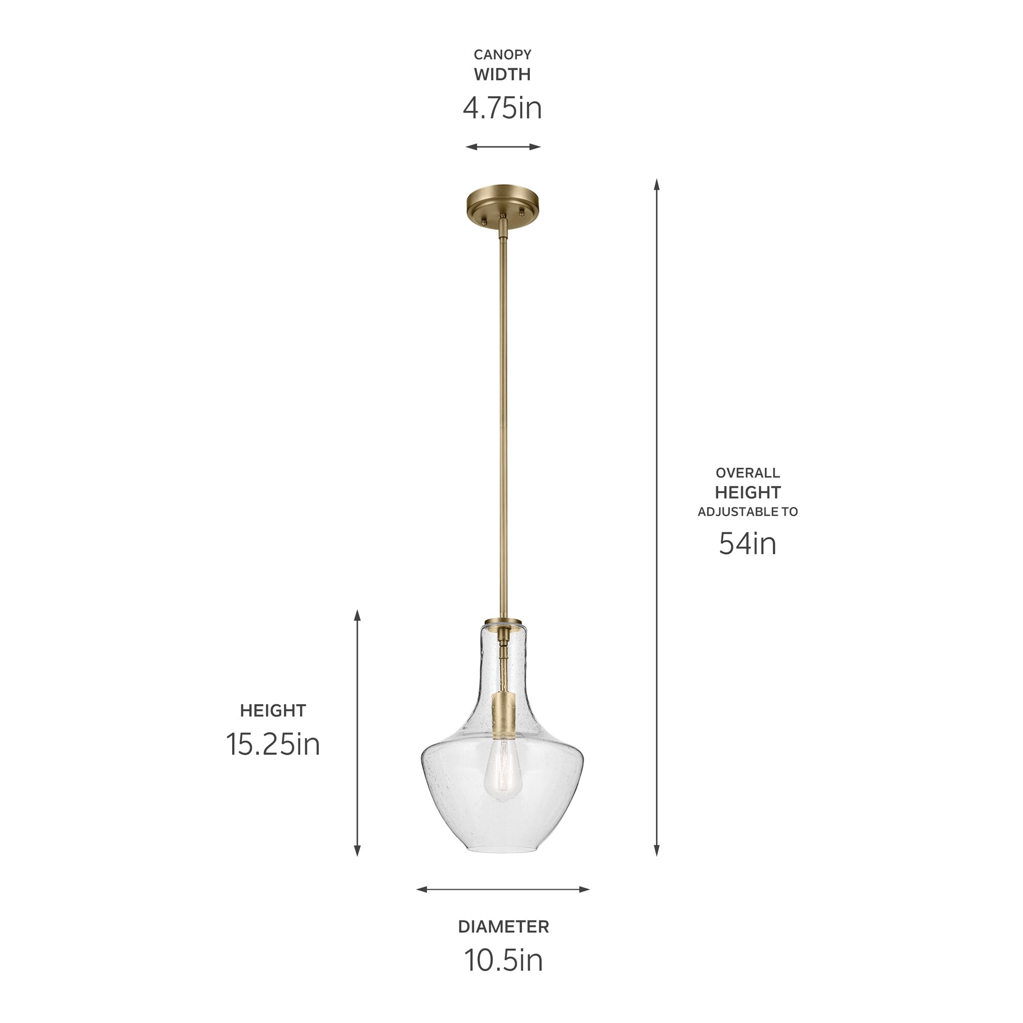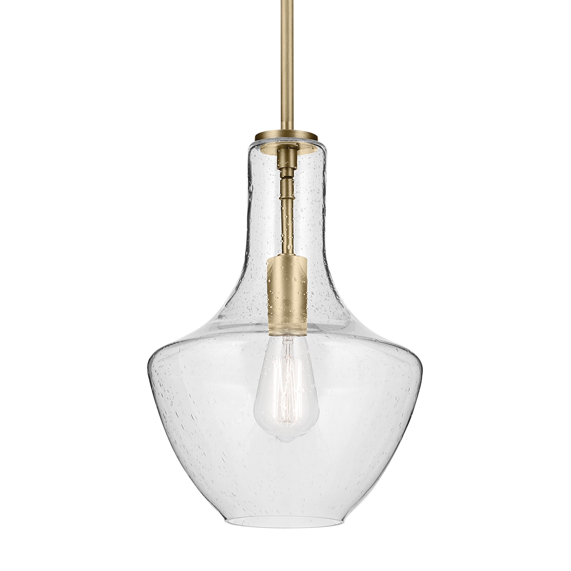 A modern style with minimal detailing, the Everly 1-light pendant easily elevates the style of soft modern environments. This elegant pendant offers a soft, curvilinear form and contemporary, clear seeded glass silhouette that provides ambient lighting to the entire room. As beautiful as it is versatile, adjust the hanging height to meet the needs of your space.