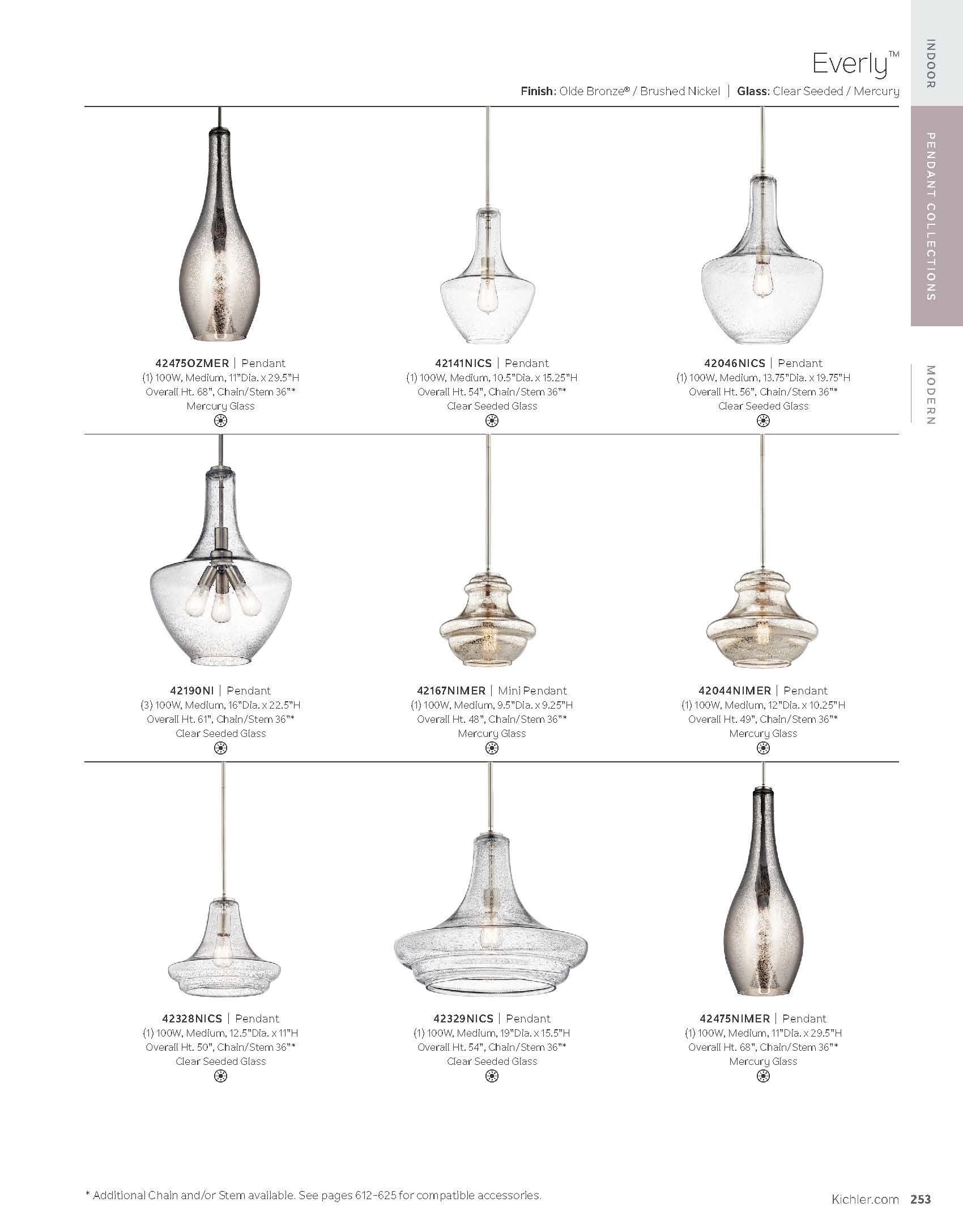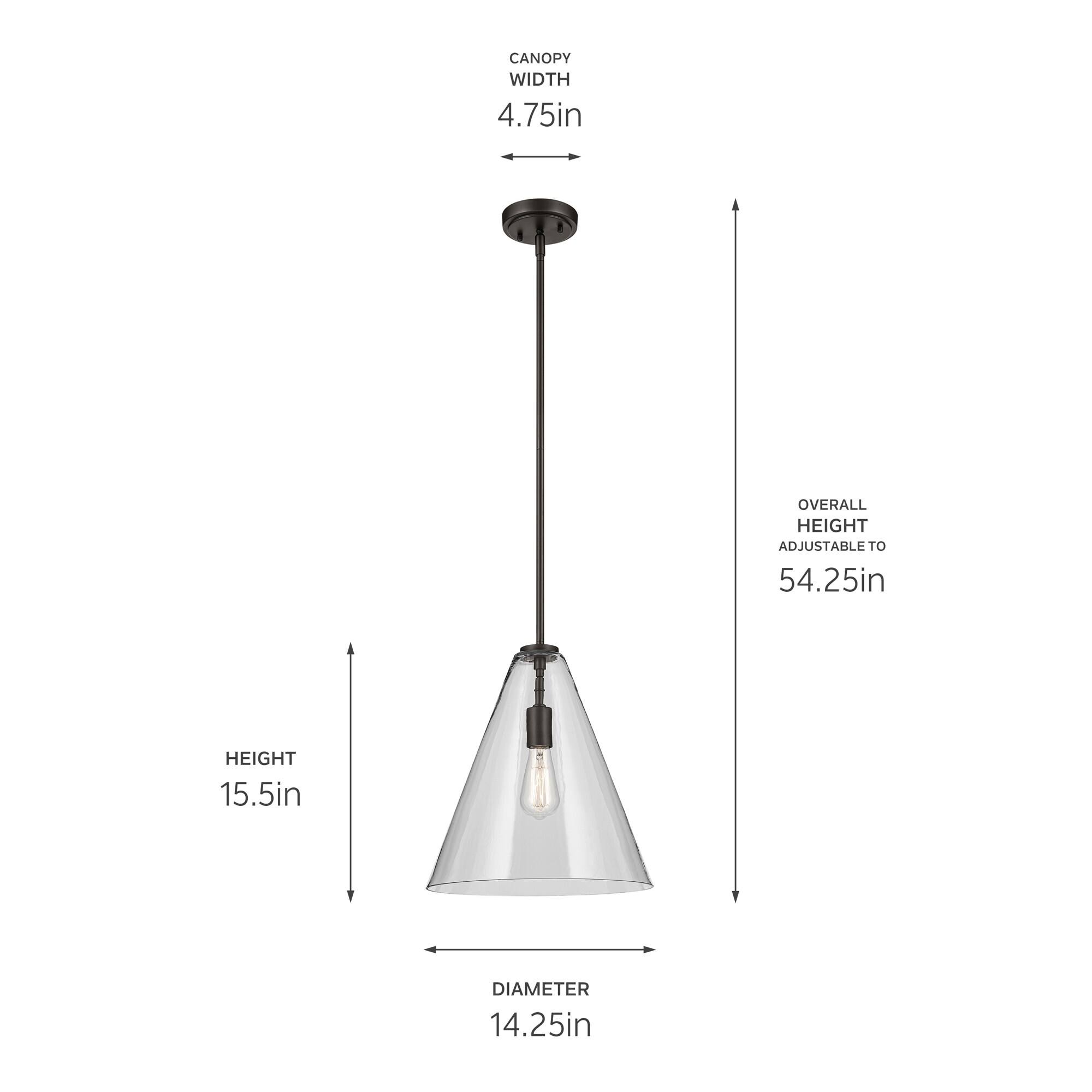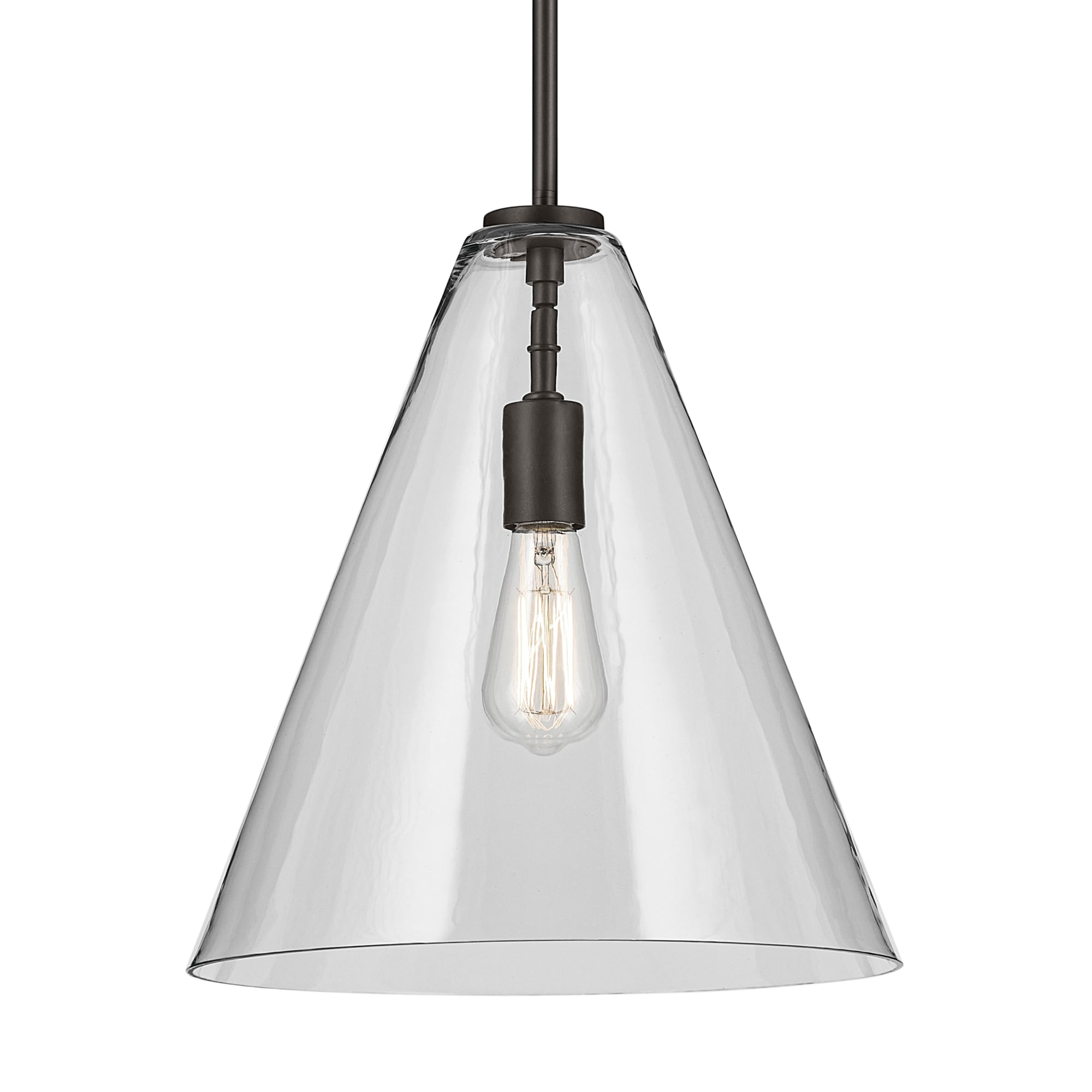 A modern style with minimal detailing, the Everly 1-light pendant easily elevates the style of soft modern environments. This elegant pendant offers a conical form and contemporary, clear glass silhouette that provides ambient lighting to the entire room. As beautiful as it is versatile, adjust the hanging height to meet the needs of your space.