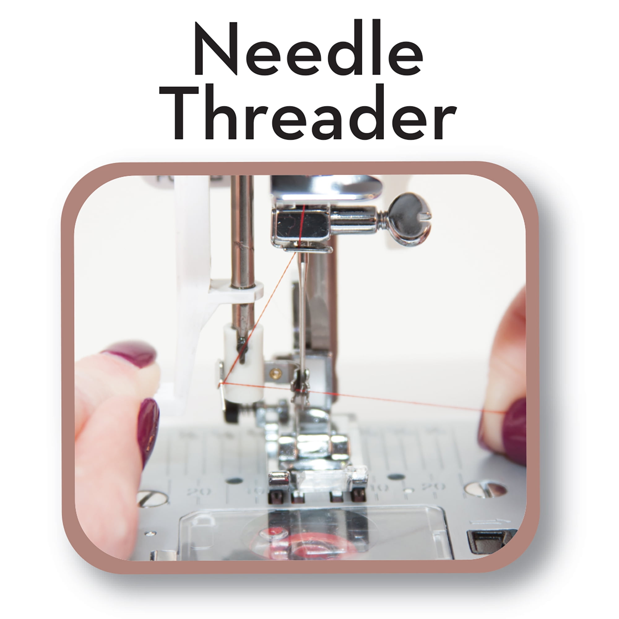 High-performance heavy duty sewing machine that’s great for both hobbyist and advanced sewers & quilters Includes a built-in library of 80 stitches Features a 6.5 inch wide sewing space with feed dog drop for both quilting and embroidery Comes with a needle up/down button function, number display, and an adjustable speed slider function Machine includes an automatic needle threader, drop-in bobbin with clear cover plate and 7 standard presser feet Can set up to 7mm maximum stitch width Gift-ready packaging makes Charlotte a perfect holiday present