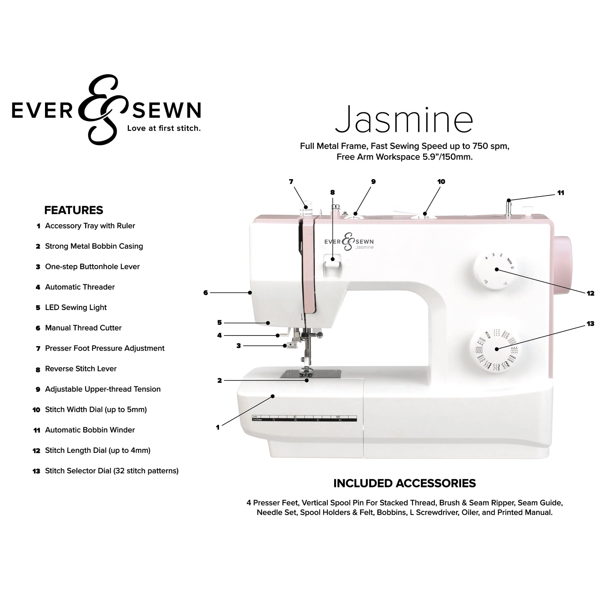 EverSewn Jasmine 32 Stitch Mechanical Sewing and Quilting Machine with 16 Accessories Included