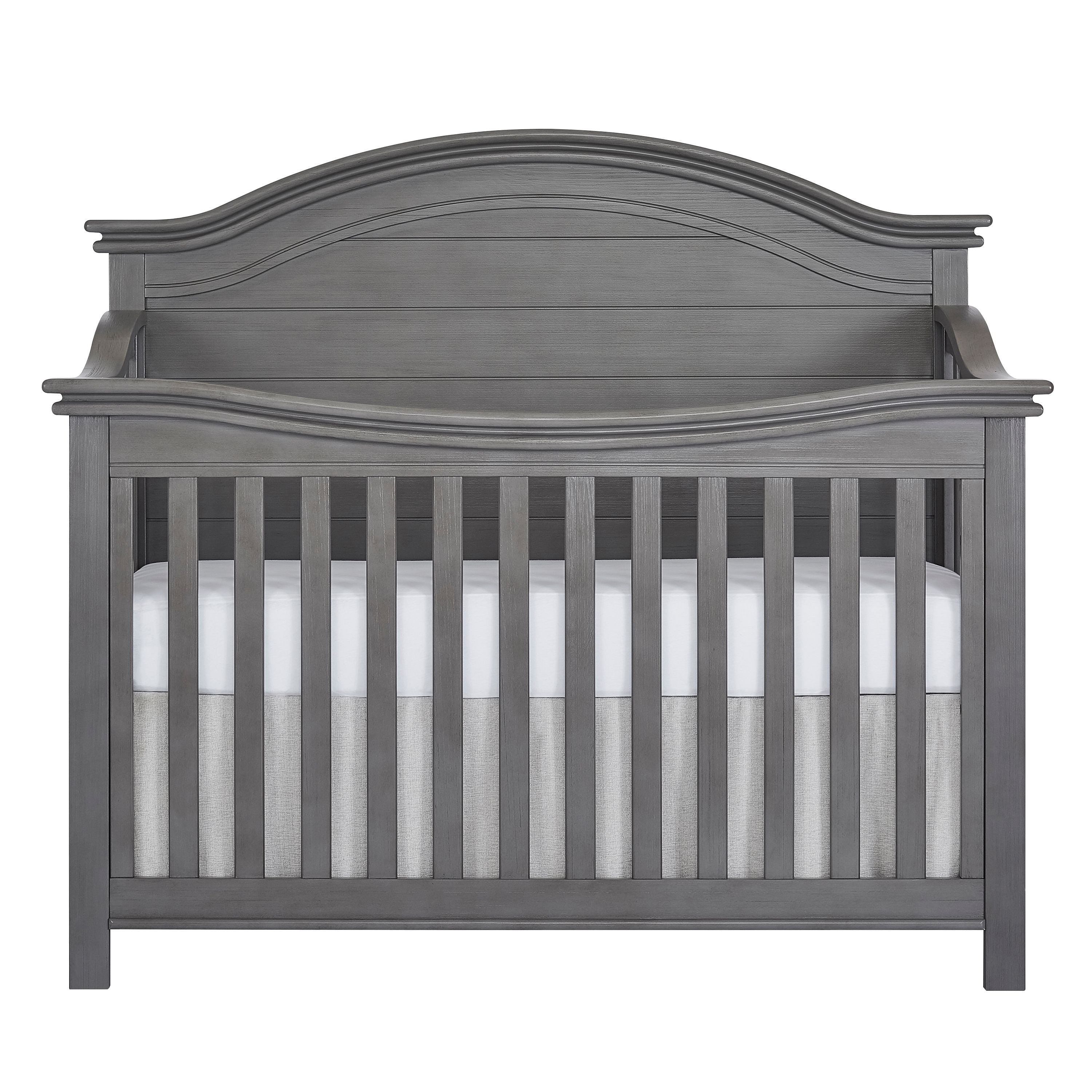 Evolur Belmar Curve 5-in-1 Convertible Crib in Rustic Grey, Greenguard Gold Certified
