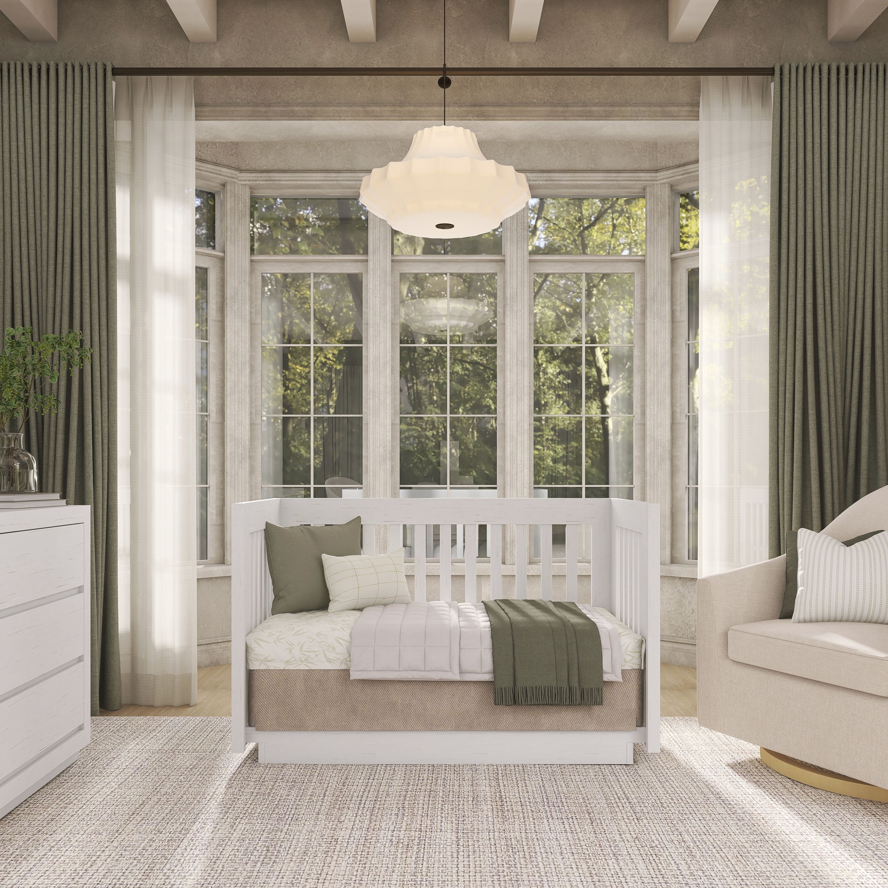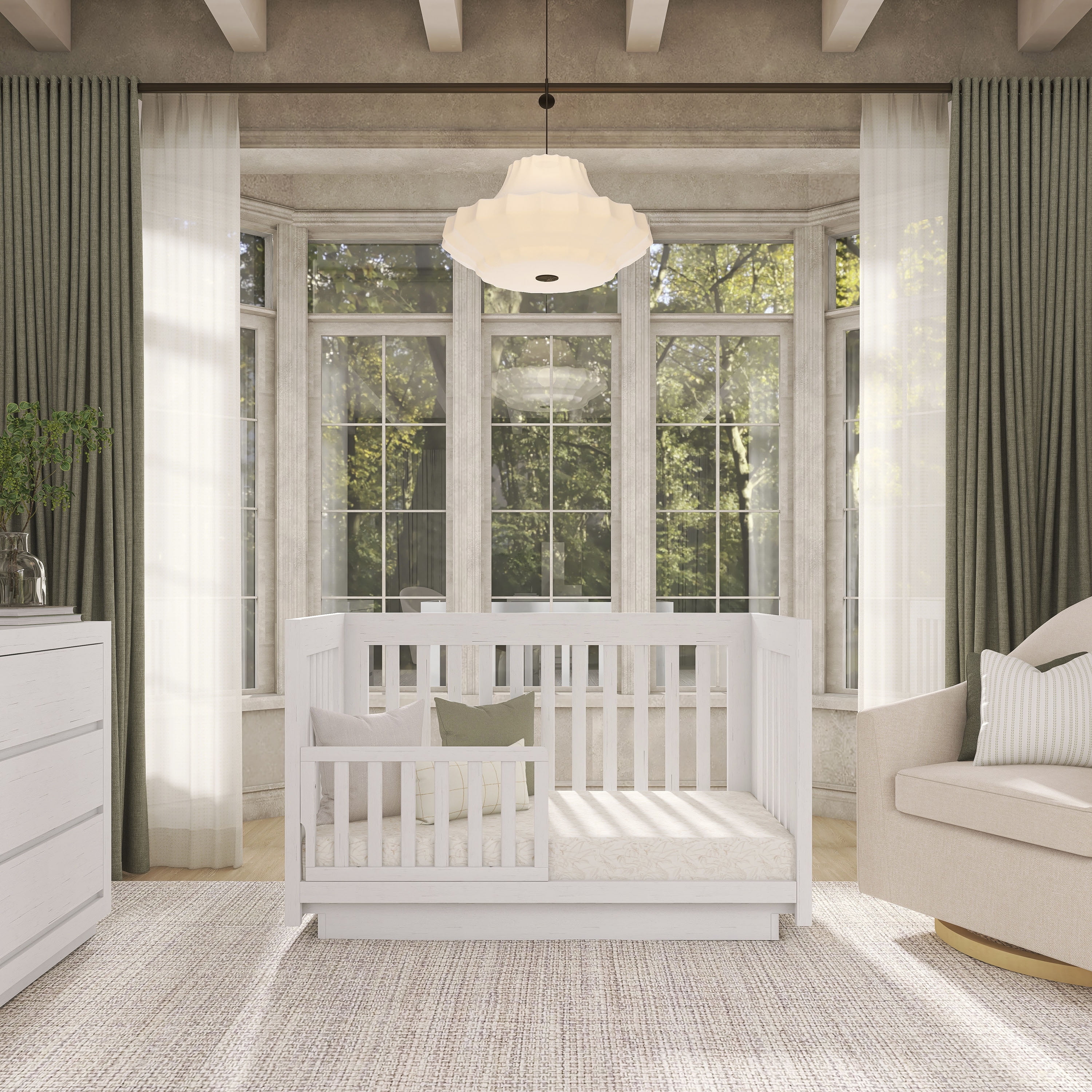 Evolur Loft introduces its Maddox Collection. A collection which was inspired by simple living and organic nature. This crib features a simple, clean lines design which converts to a toddler bed, a daybed to accommodate your growing child (conversion rails sold separately). Using quality materials and craftsmanship, along with forward-thinking functionality, this piece is designed to work effortlessly throughout the years with a modern feel and distinctively understated. The textured finishes offer an earthy wood tone which can be paired together with greenery and elements of the outdoors to showcase how minimalism and nature make the perfect combination. Evolur Loft Maddox collection offers as an array of case goods including standard double dressers, and tall chests. Also available is a universal nightstand, change station tray, conversion kit and toddler rail( sold separately).
