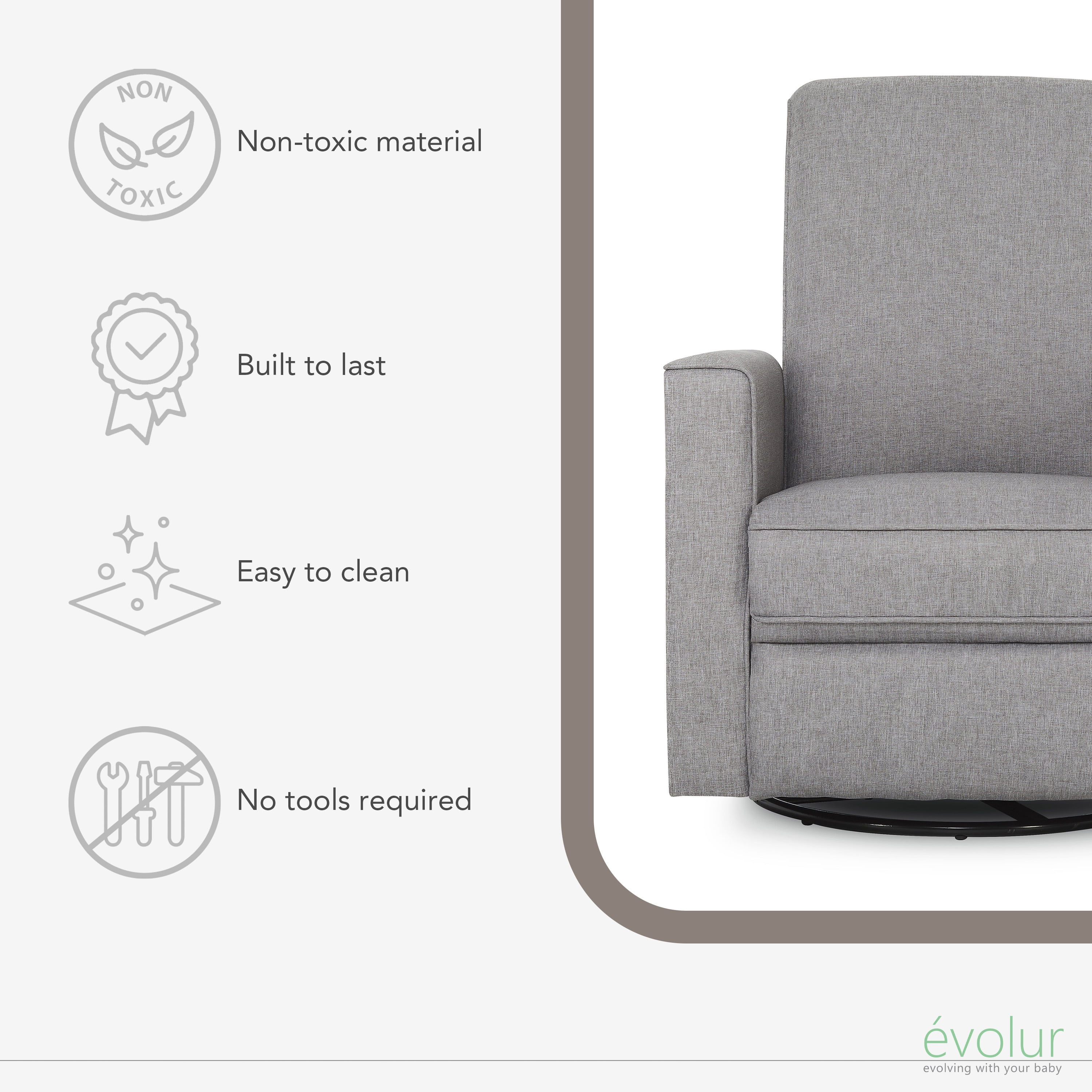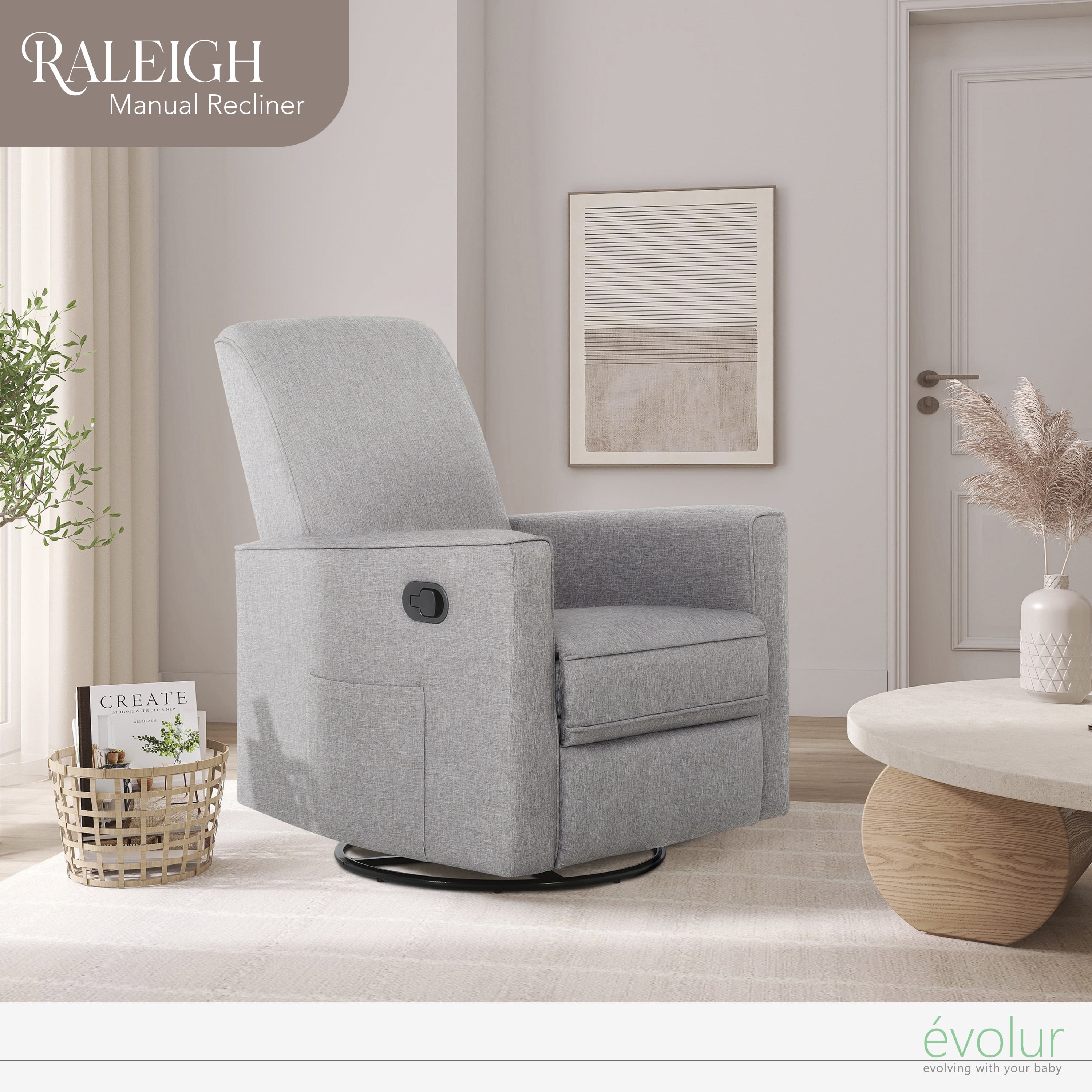 Evolur Raleigh Nursery Glider Recliner and Rocking Chair in Light Gray, 360° Swivel Motion, Multiple Recline Positions, Easy to Clean, FSC and Greenguard Gold Certified