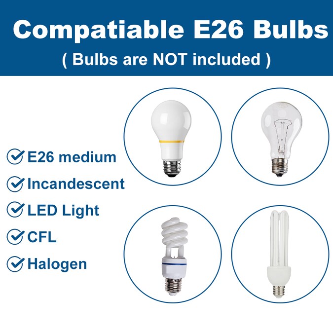 - Light Bulb Base Type: Medium base (E-26)