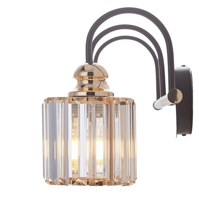 - This vanity light features a gold metal rectangle backplate and the electroplated light grey wine-glass lampshade, create a warm and soft atmosphere.