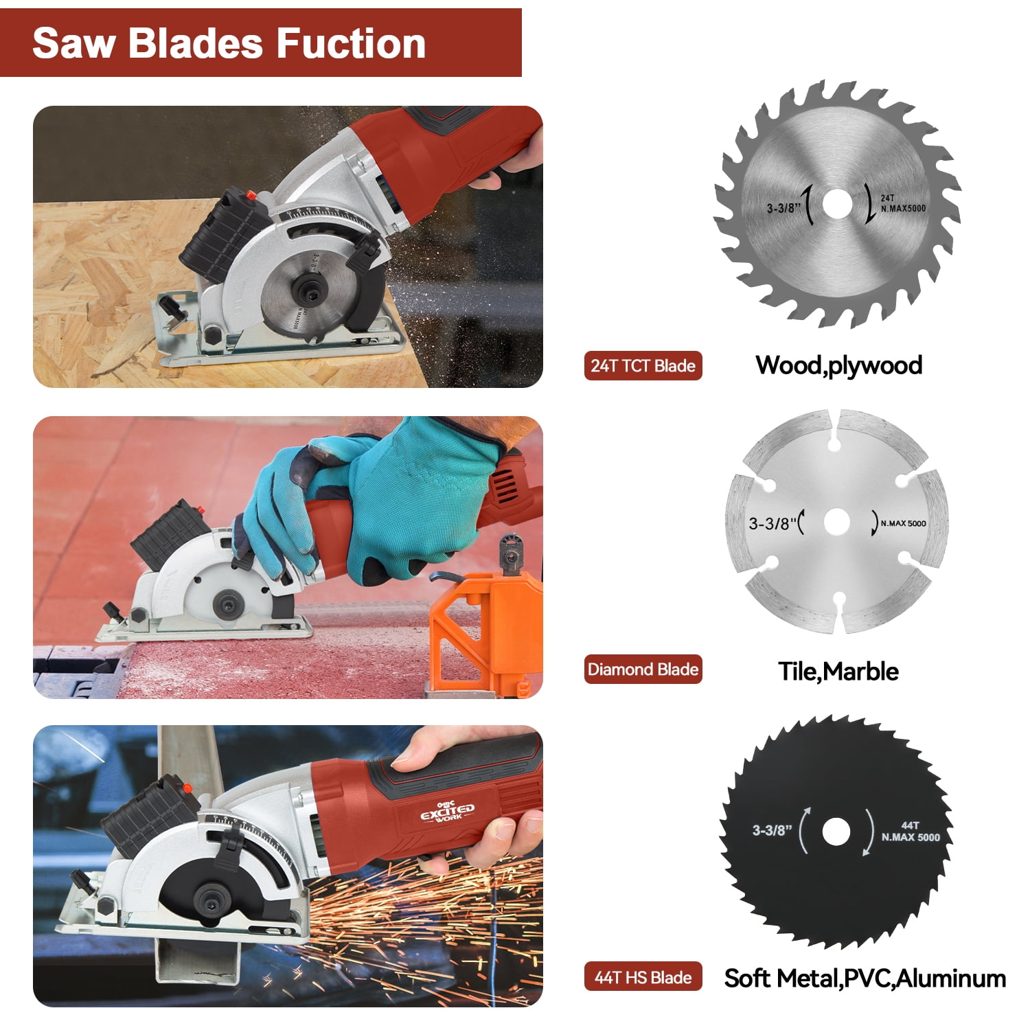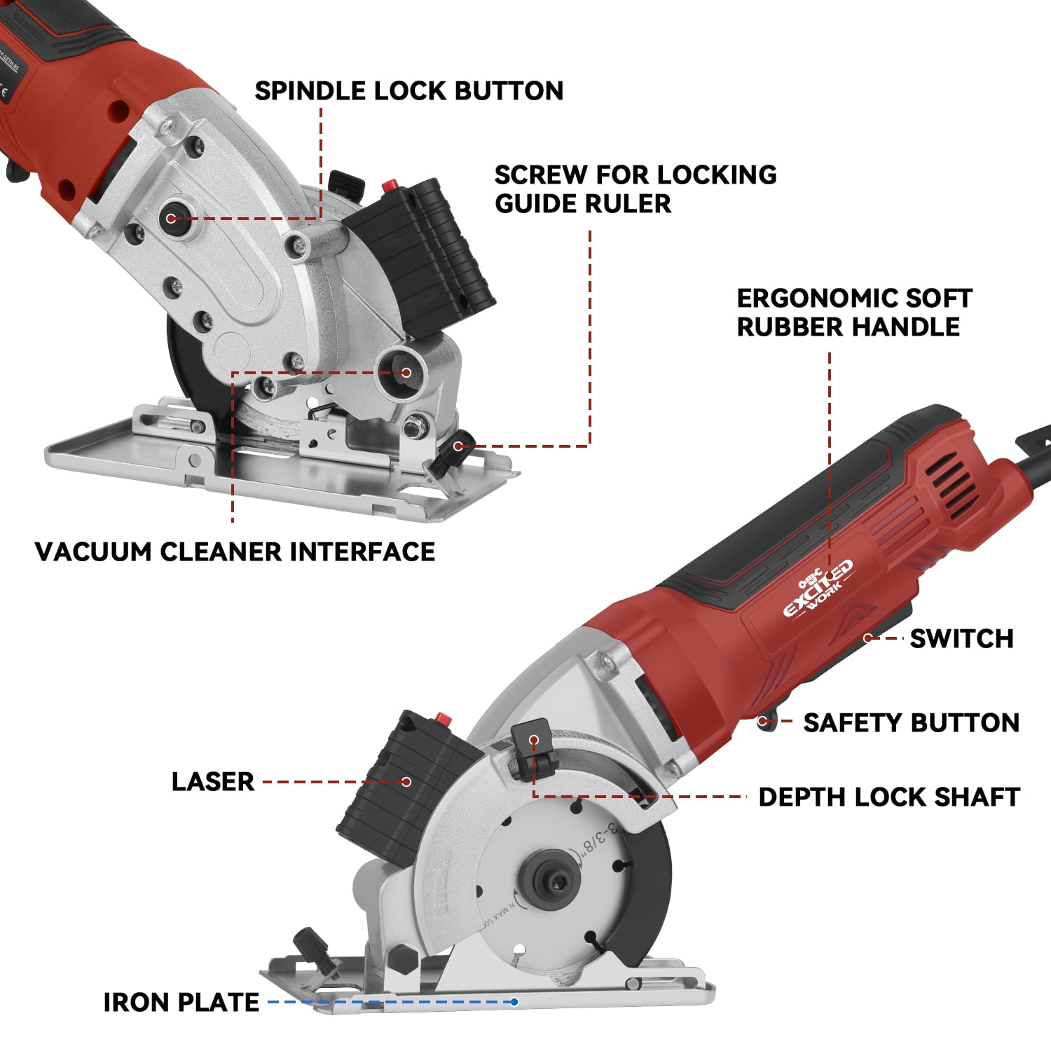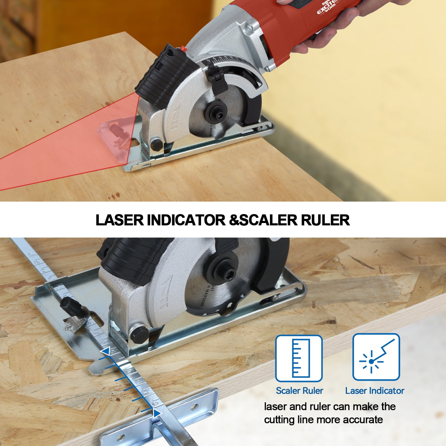 EXCITED WORK, 4.5Amps 3-3/8 in Electric Circular Laser Guided Power Saw, 6500 RPM
