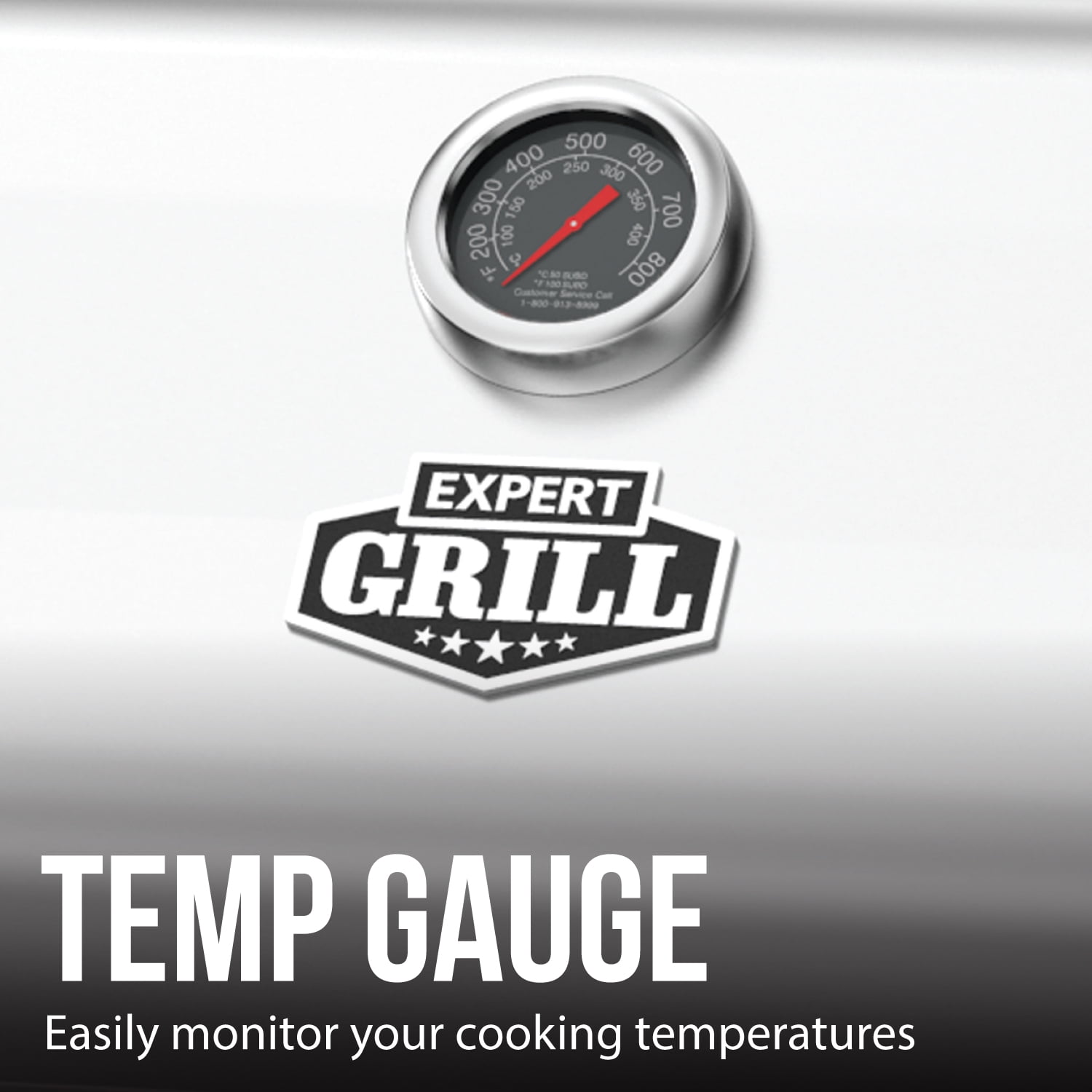- The attached temperature gauge lets you keep track of your grill’s internal temperature.