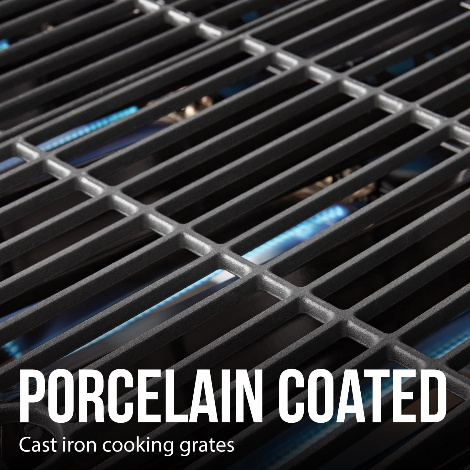 - Durable cast iron cooking grates provide the perfect grill marks and clean up easily when the grilling is done.