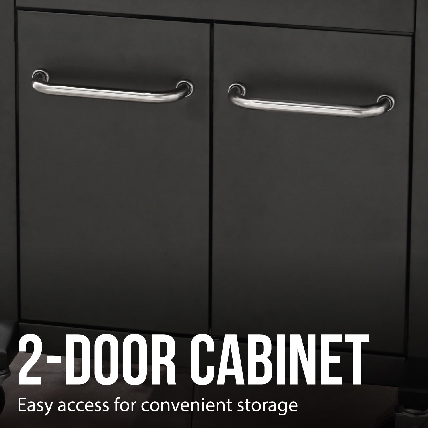 - Double access cabinet doors provide ample storage space for an LP tank, grilling tools, or any other accessories you may need to keep secure.