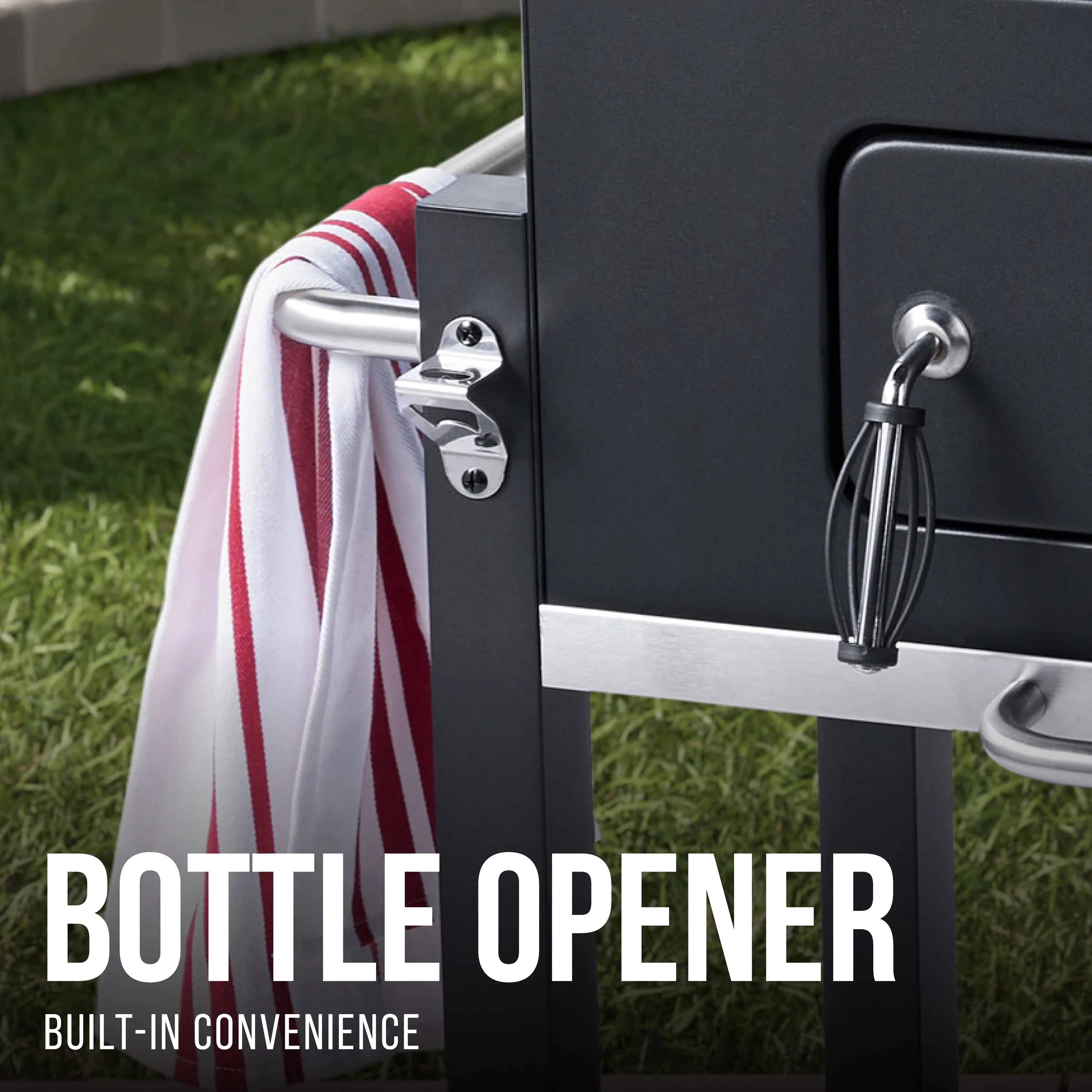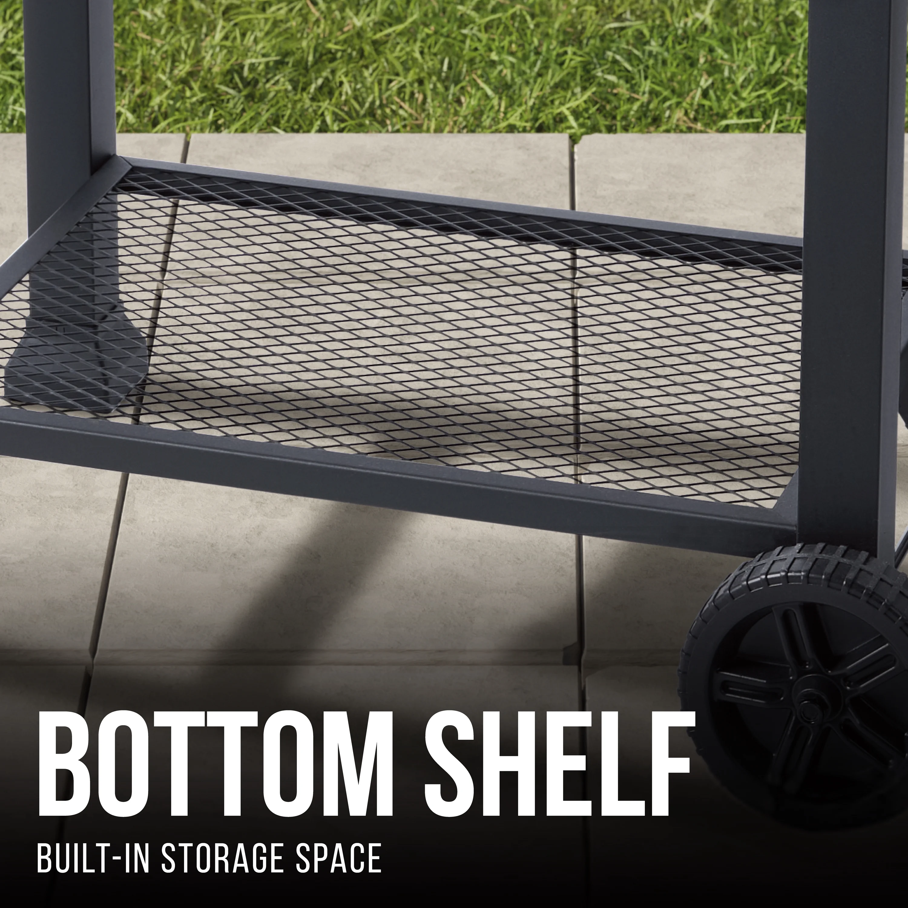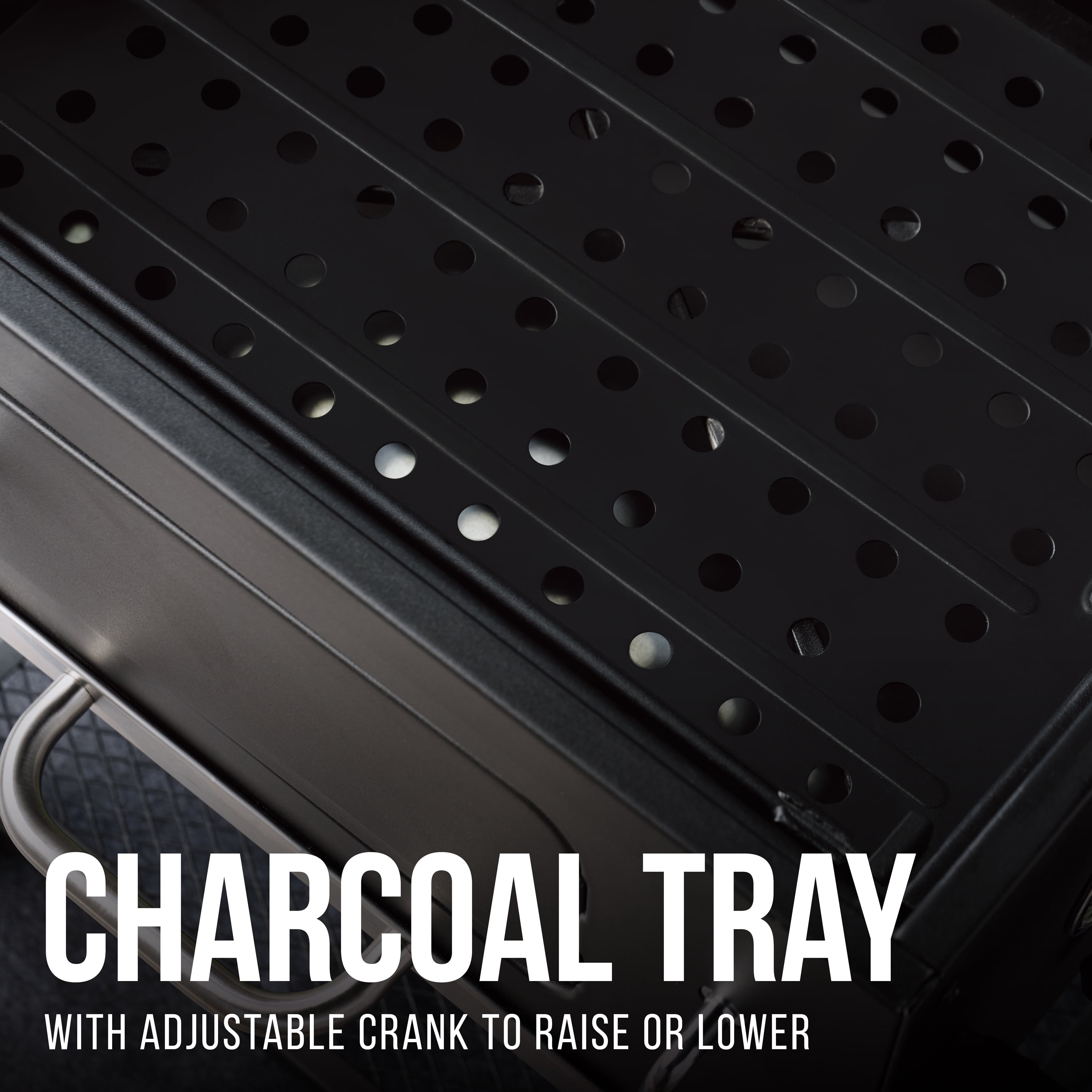 Charcoal grill with black powder coated finish 372 sq. in. heavy-duty cast iron cooking surface with space for up to 20 burgers Chrome warming rack measures 201 sq. in. Hinged, high-temperature lid with vent and large door handle for easy opening Adjust charcoal pan height with crank to customize cooking temperatures Two wheel cart design for portability Built-in thermometer on top of lid lets you see temperature at a glance Foldable side shelf with three hanging hooks for utensil storage Includes open bottom shelf for extra storage Built-in bottle opener so you can enjoy beverages while you grill Slide-out ash pan for quicker cleanup 2 year limited warranty Assembled product dimensions 44.88″ L x 26.38″ W x 42.32″ H Assembled product weighs 70 lb. Model number XG1910200103 Expert Grill Customer Service: 1-833-908-2026