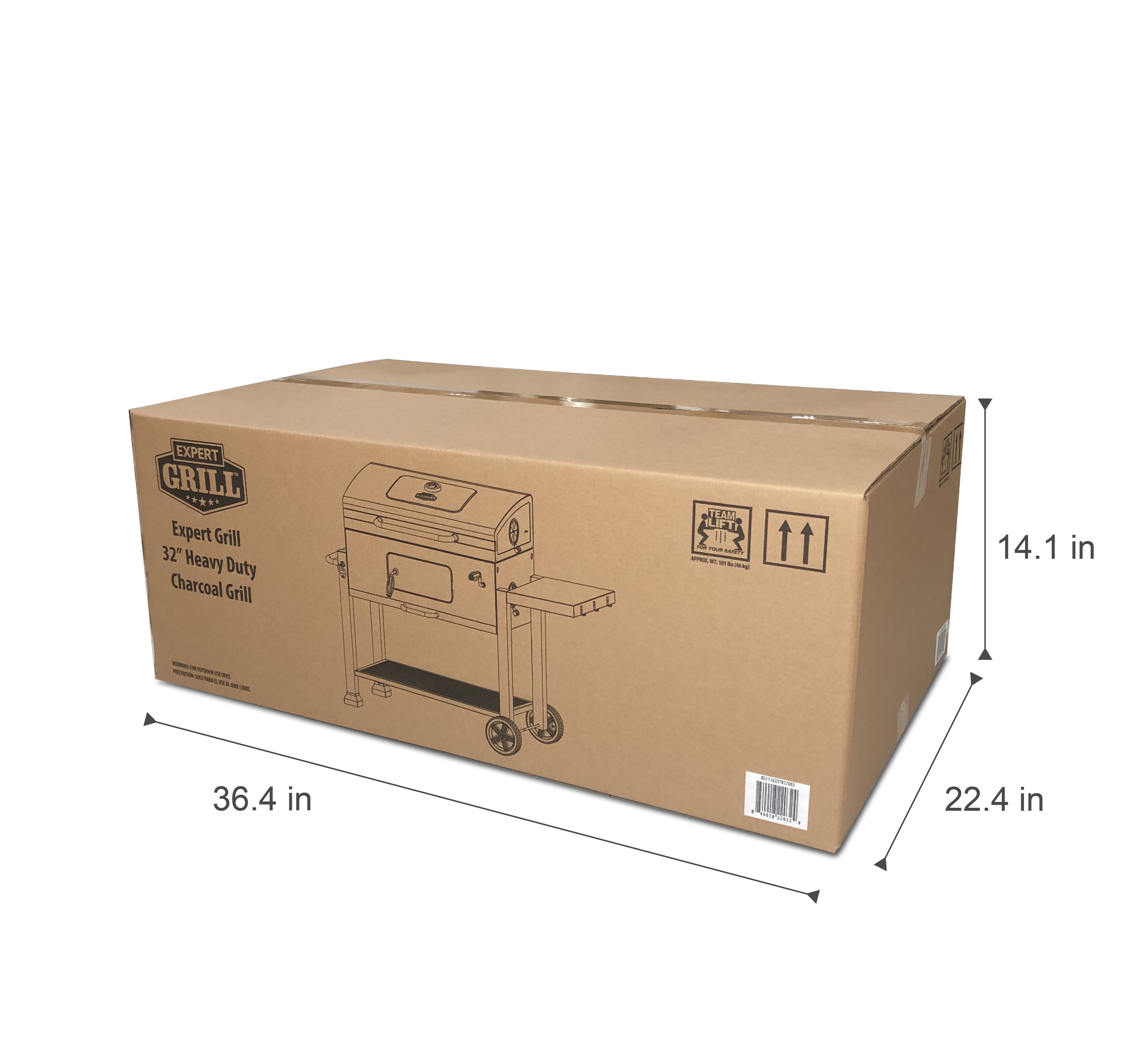 With plenty of grill space to cook for all your family and friends, the Expert Grill Heavy Duty 32” Charcoal Grill will be the star at your next backyard barbecue or gathering. This cart-style grill has a 490sq. in. main cooking surface that’s large enough to grill 25 burgers at once plus a 276 sq. in. warming rack. This grill is equipped with heavy-duty cast iron cooking grates that retain heat exceptionally well and produce restaurant-quality sear marks on steaks, burgers, chicken, and more. Other features include a charcoal access door, an adjustable charcoal pan, and built-in, easy-to-read lid thermometer. The foldable side shelf offers space for platters, marinades, and more, and the shelf has three hooks to keep grill tools and utensils within easy reach. Wheels on the right legs offer easy maneuverability around a porch, patio, or deck. The Expert Grill Heavy Duty 32” Charcoal Grill is available in black with a durable, powder-coated finish.