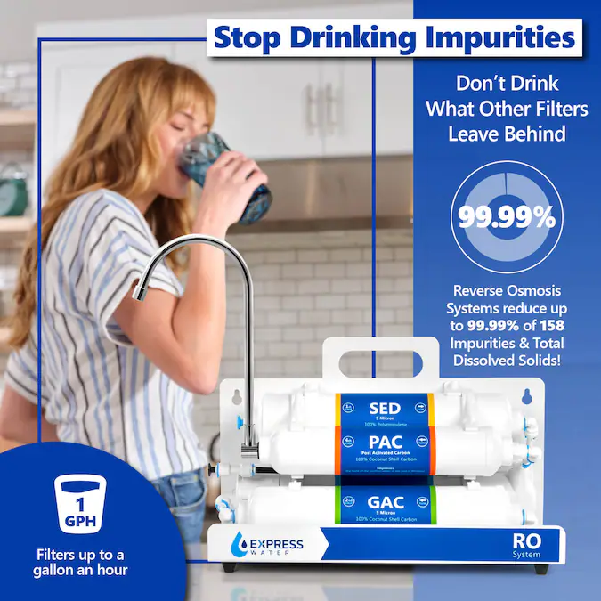 - 4 Stage Water Filters: Express Water 4 Stage Countertop Water Filter Systems include Sediment filter, Granular Carbon filter, Reverser Osmosis Membrane, and Post Activated Carbon filter to remove 99.99% of major contaminants in your drinking water