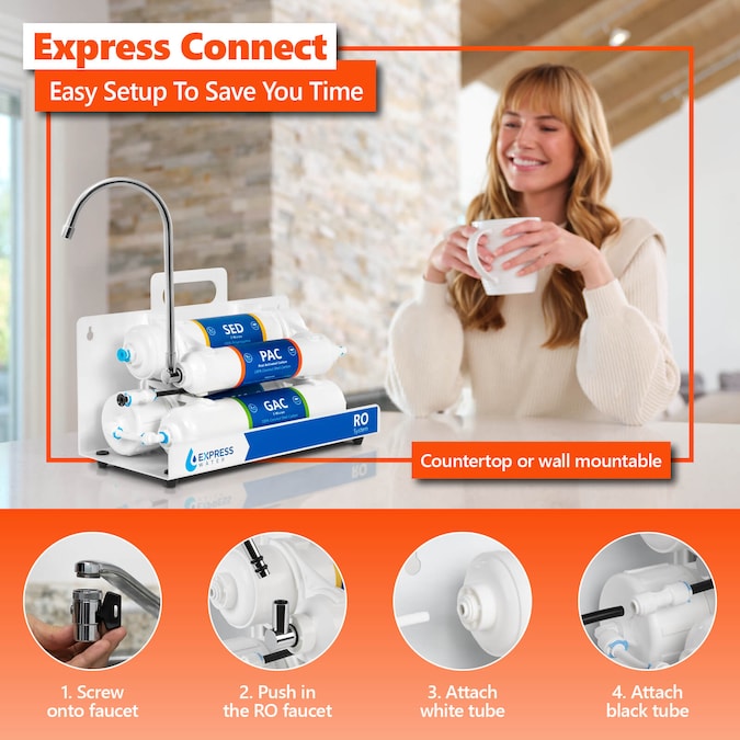 - Easy to Install Countertop Filter: Express Water’s countertop reverse osmosis systems only requires minutes to install and is designed for an easy 4-point installation that fits most standard faucet types