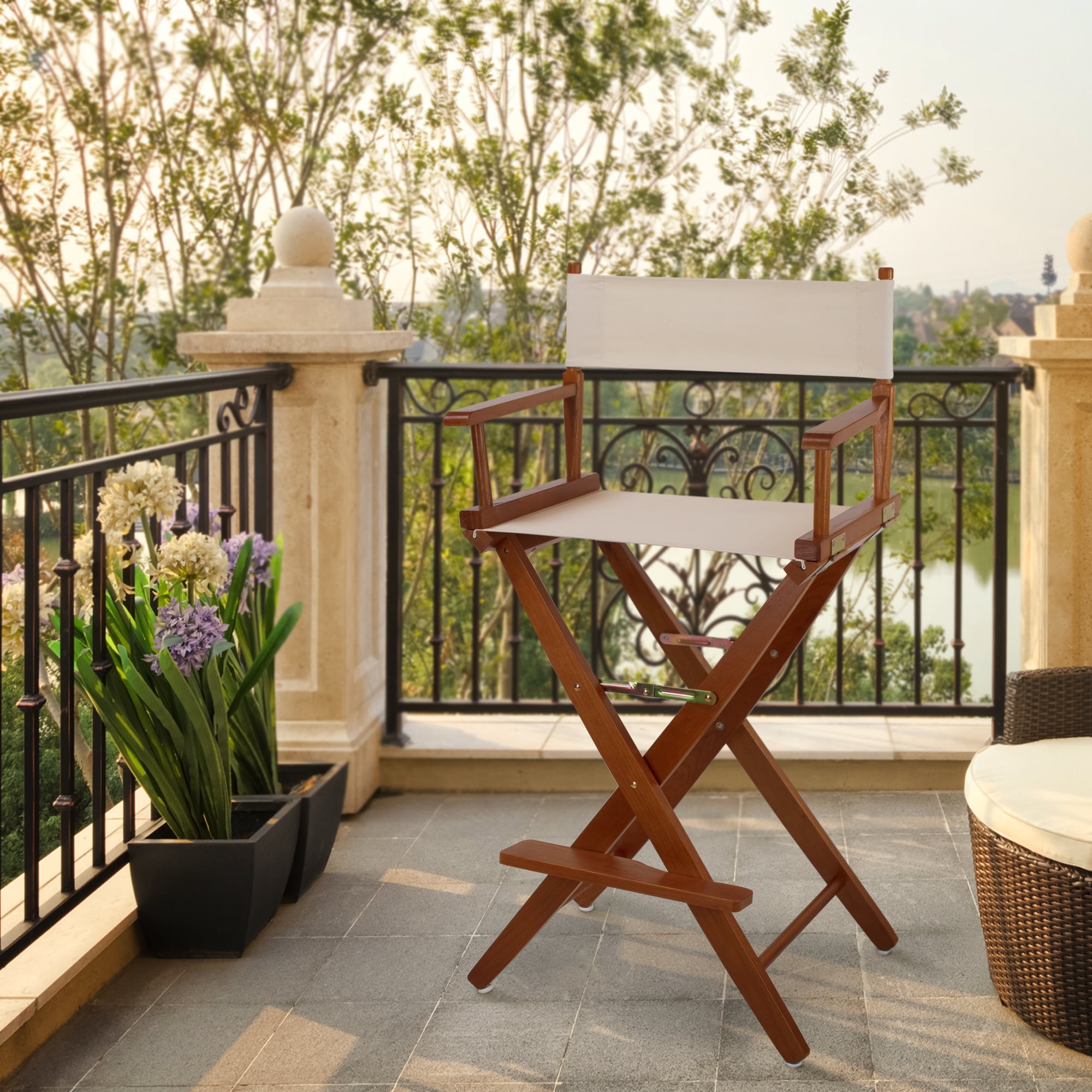Does the world look different from your plh seat atop the Extra-Wide Premium 30 in. Hardwoods Bar Height Directors Chair, or do you always smile like that? The frame of this posh outdoor chair is crafted from premium oak, giving it a robt body that’s ready for a bit of weather or outdoor entertainment. A wide seat with thick arms and a convenient footrest are paired with a seat and back of high-quality canvas and the results are nothing short of what you’d expect from a classic director’s chair. There’s a full range of color options for the canvas, as well as a variety of frame finishes, so ctomize your own and get ready to see what’s going on outside your door.