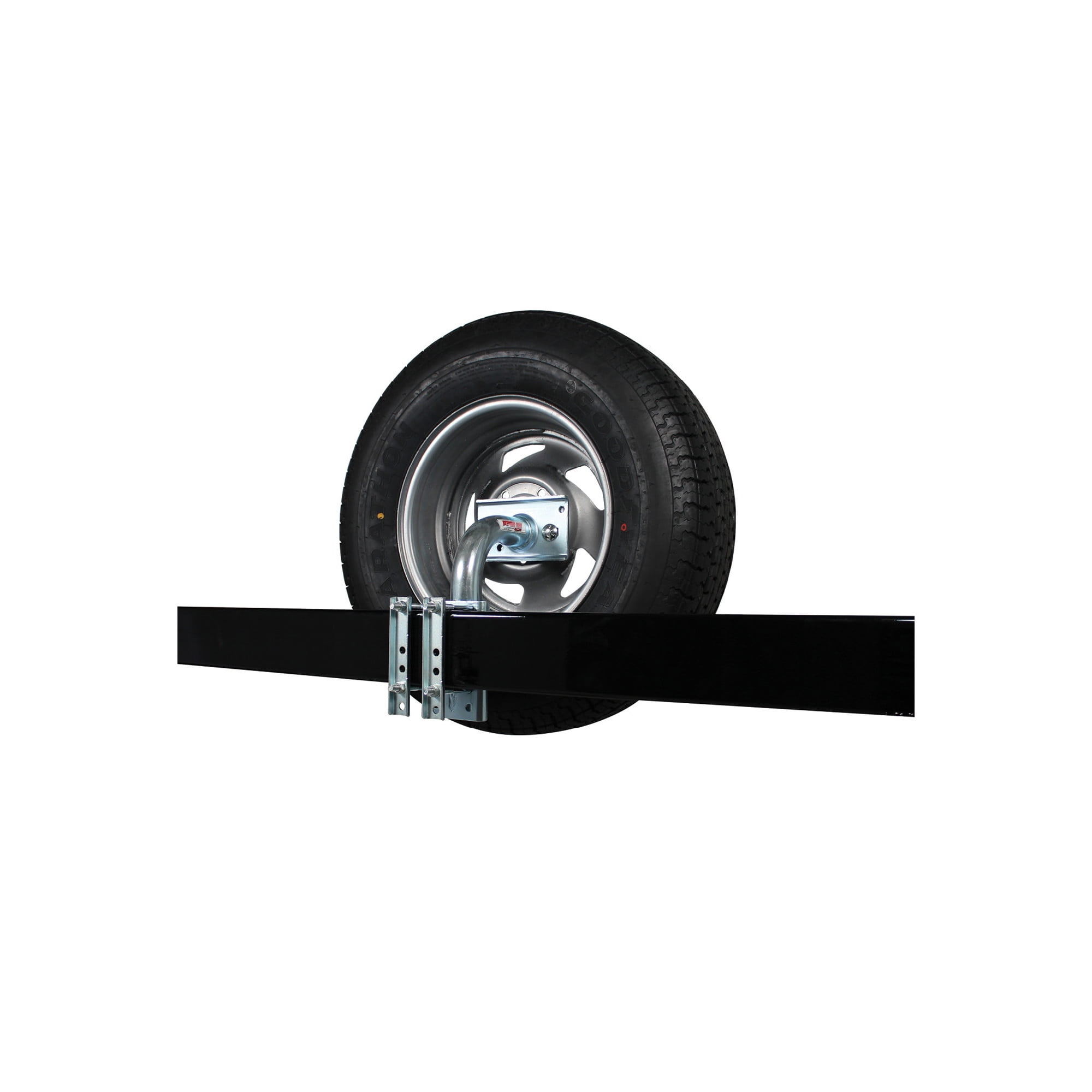 A spare tire carrier is the best way to ensure that you’re never the guy stuck by the side of the road. This model features durable steel construction with zinc plating, and a bolt-on design for easy installation (no cutting, no drilling) on trailer tongues 1.75″ to 3″ wide x 5″ high. Fits 4, 5, and 6 lug wheels. Not intended for applications where the trailer will be in contact with saltwater or brackish water. Stud Size: 1/2-13 x 45. Two-year replacement warranty.
