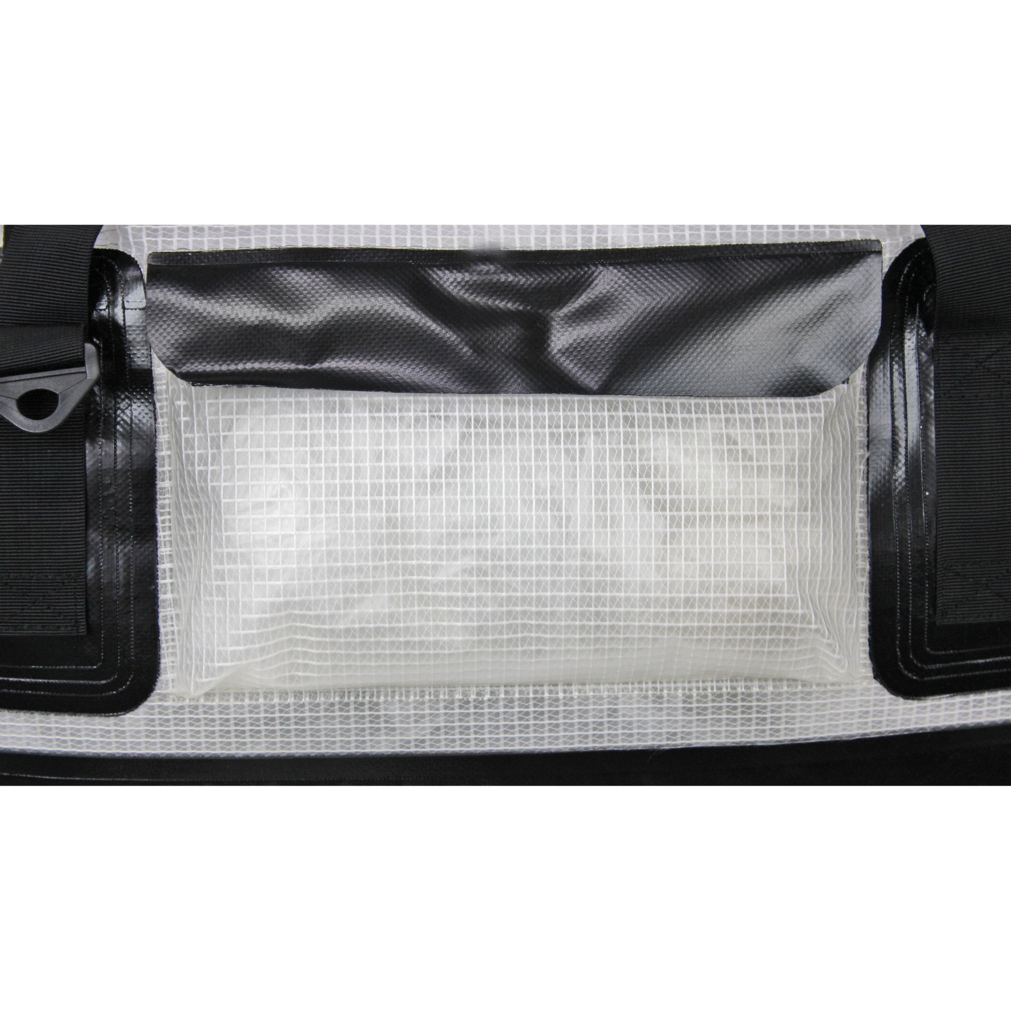 Dry Tech 110L / 30″ x 14″ x 15″ duffel bag with roll top, removable/adjustable shoulder strap and zippered exterior pockets with storm flaps Designed to work for a variety of applications from boating and paddle sports to camping and hunting Poly/vinyl laminate construction with semi-rigid molded bottom Electronically welded seams, durable plastic hardware Two-year limited warranty
