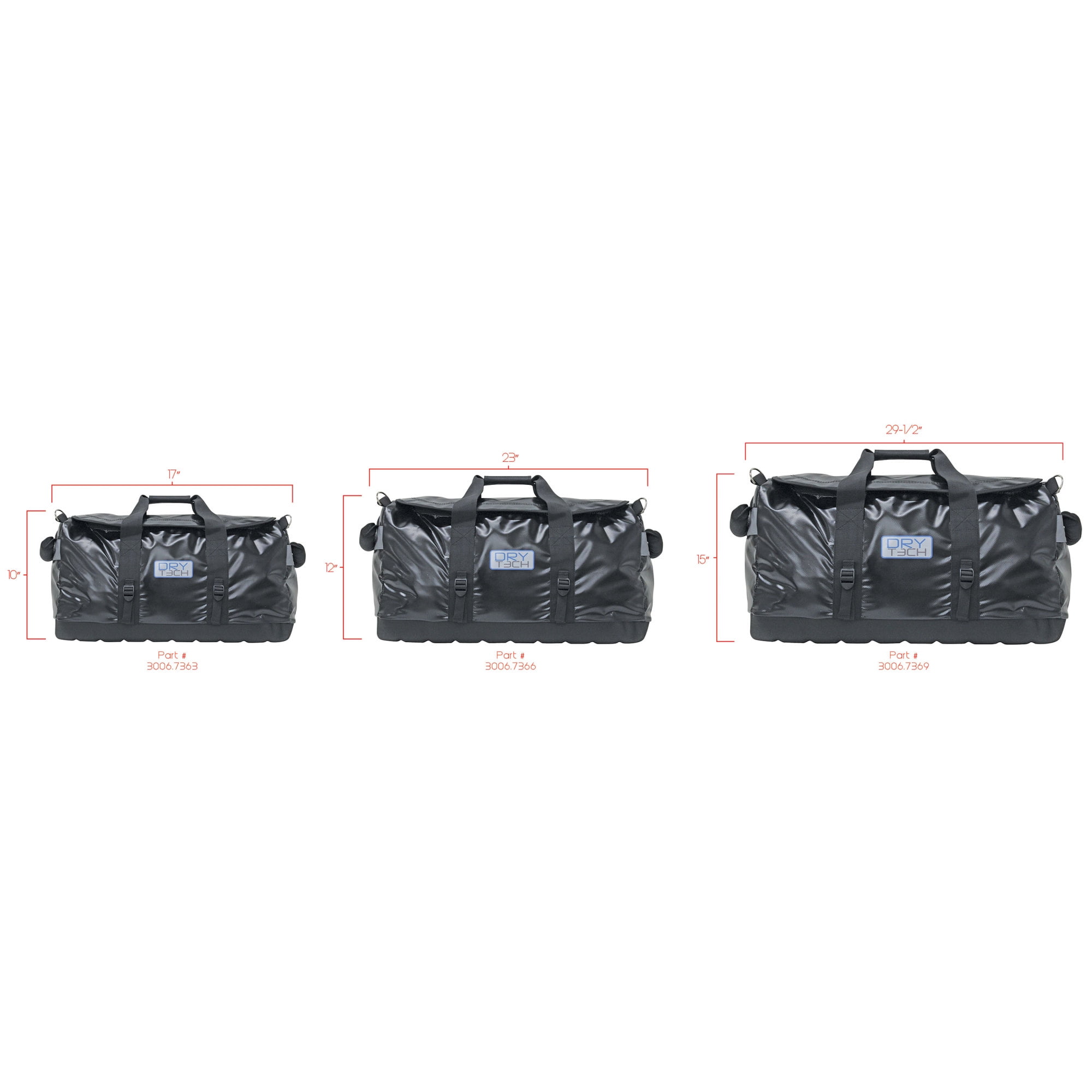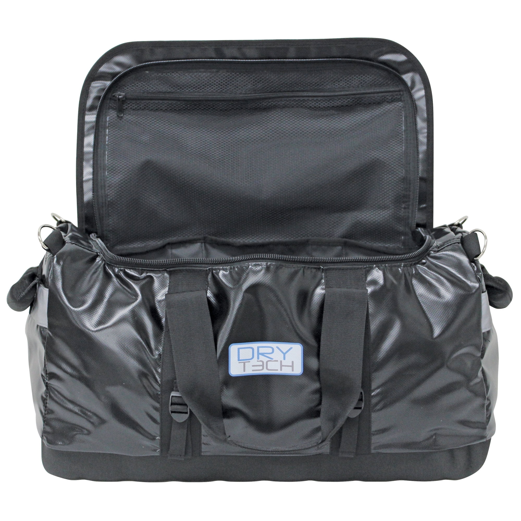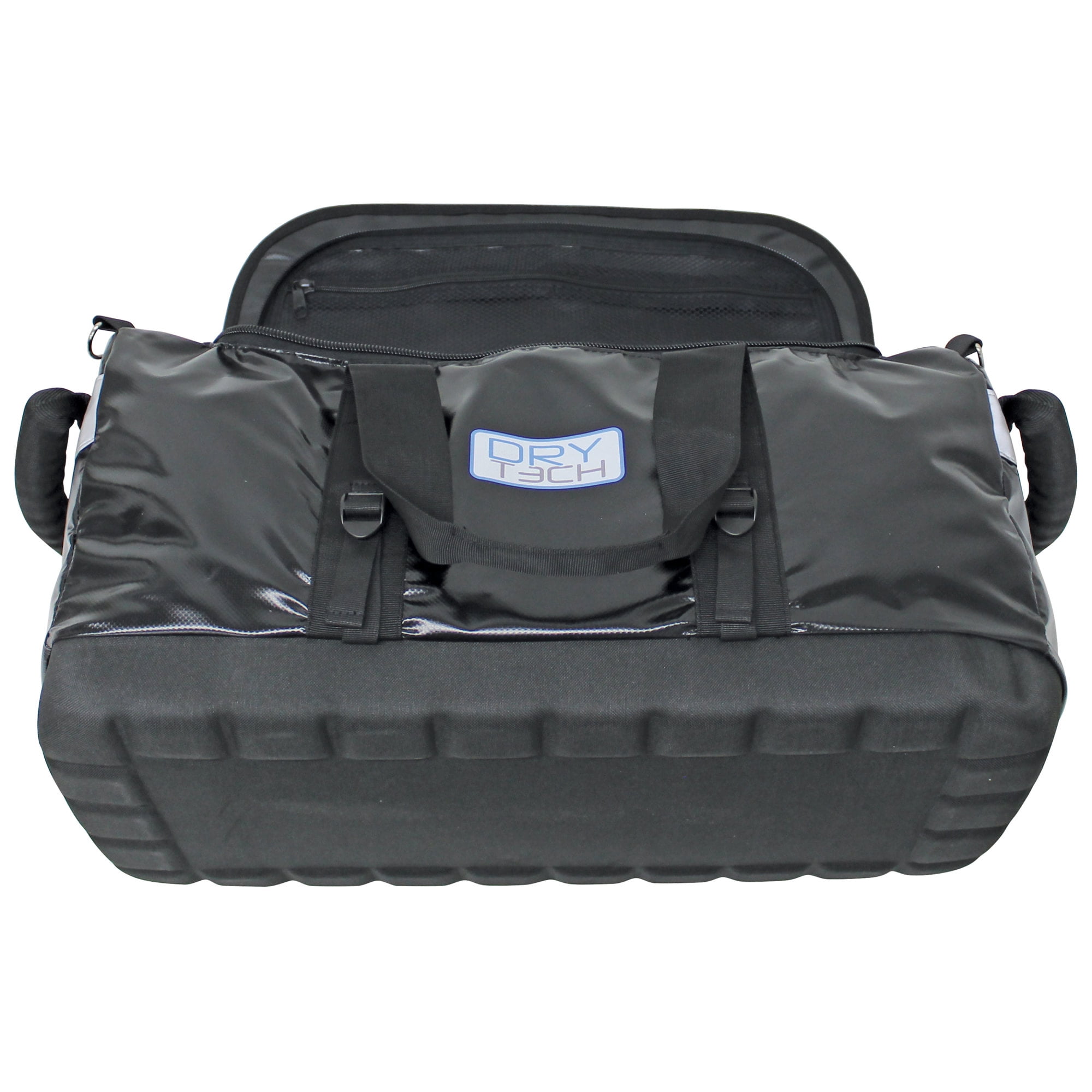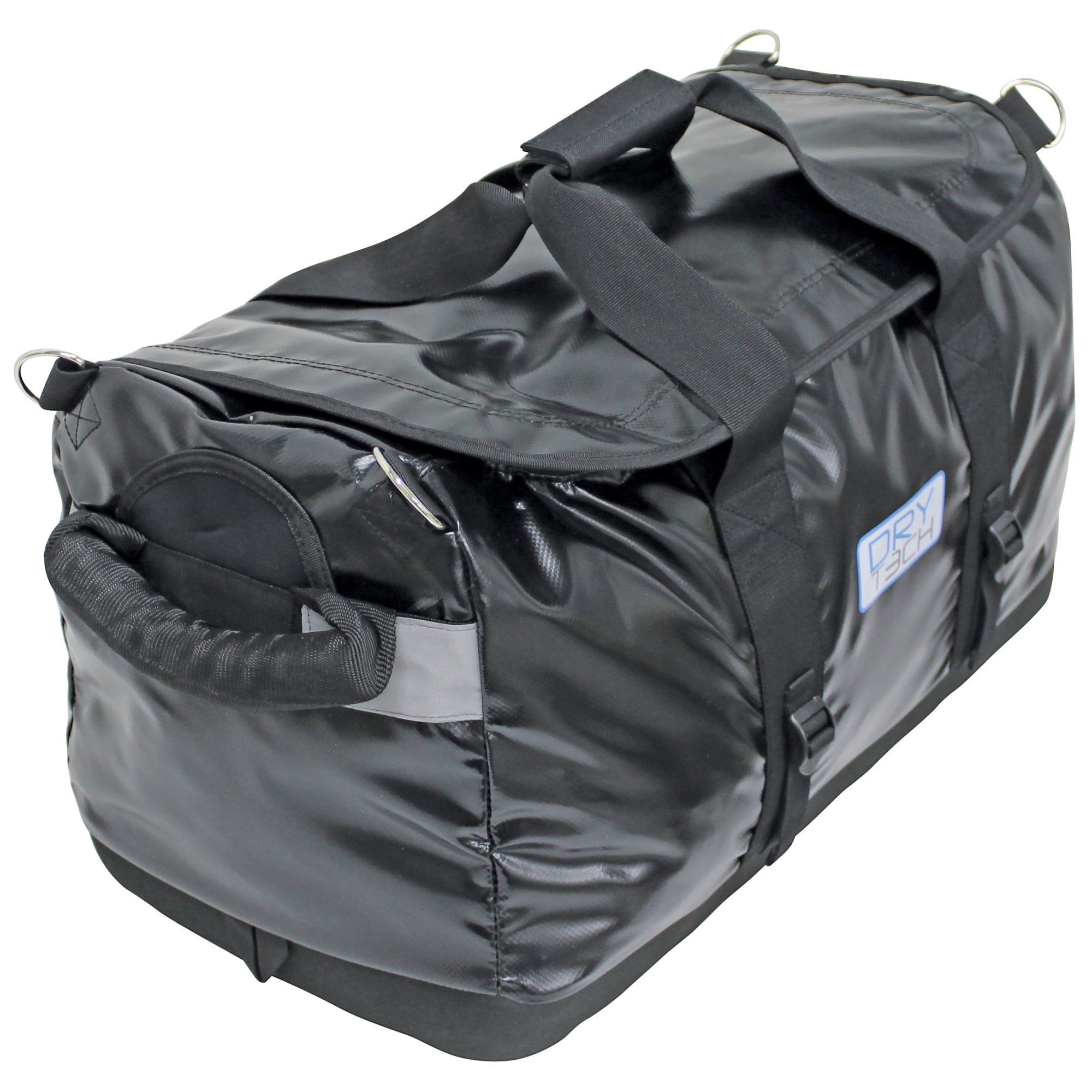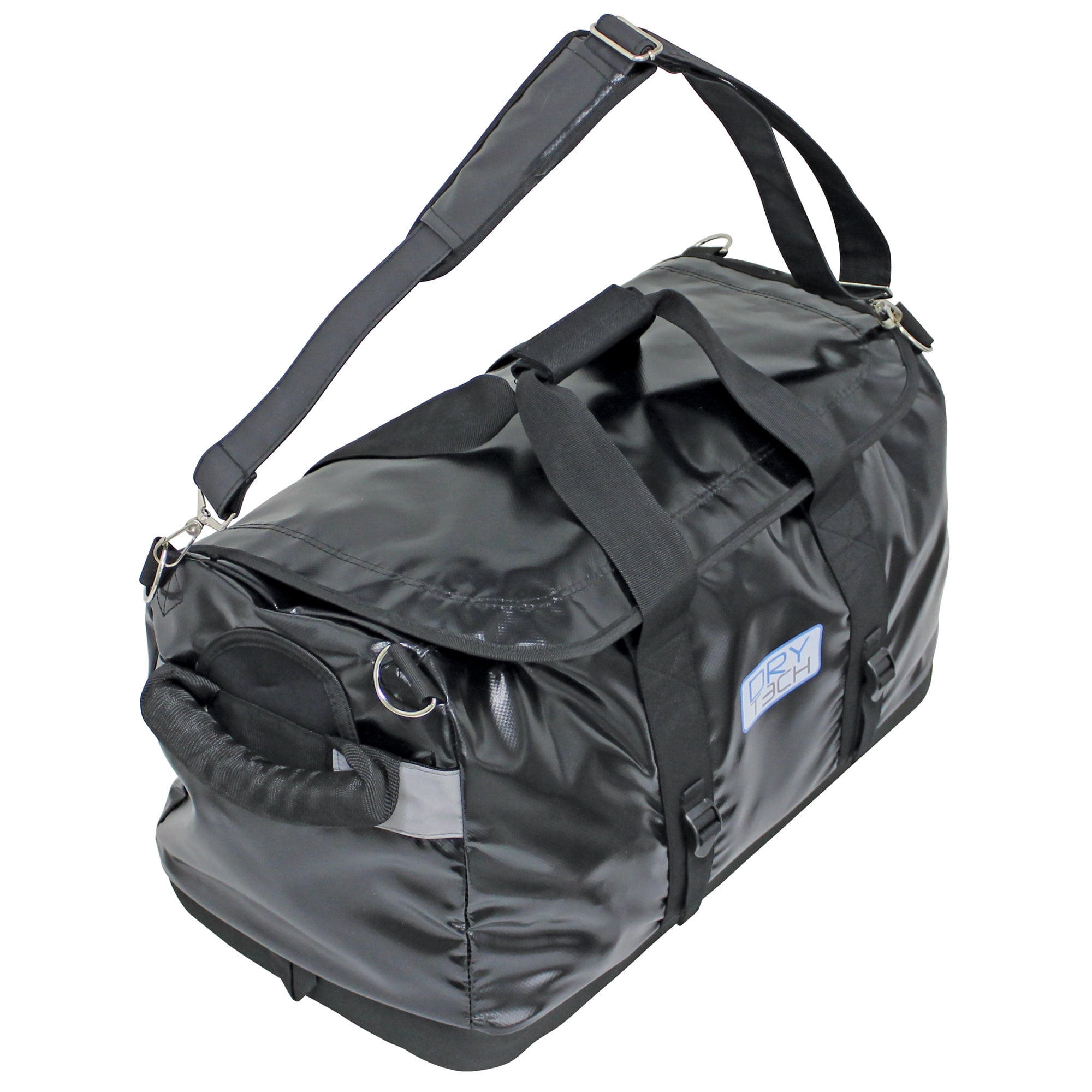 Dry Tech duffel bags offer exceptional protection against water damage. Constructed of polyester mesh laminated in tough PVC fabric. Designed with padded end grips for easier carrying with heavy-duty U zippers for easy access, and side compression straps for added support. The molded EVA padded base provides stability and structure for easy access and safer transport. Includes removable/adjustable padded shoulder strap. For use in a variety of applications from boating to camping and hunting.