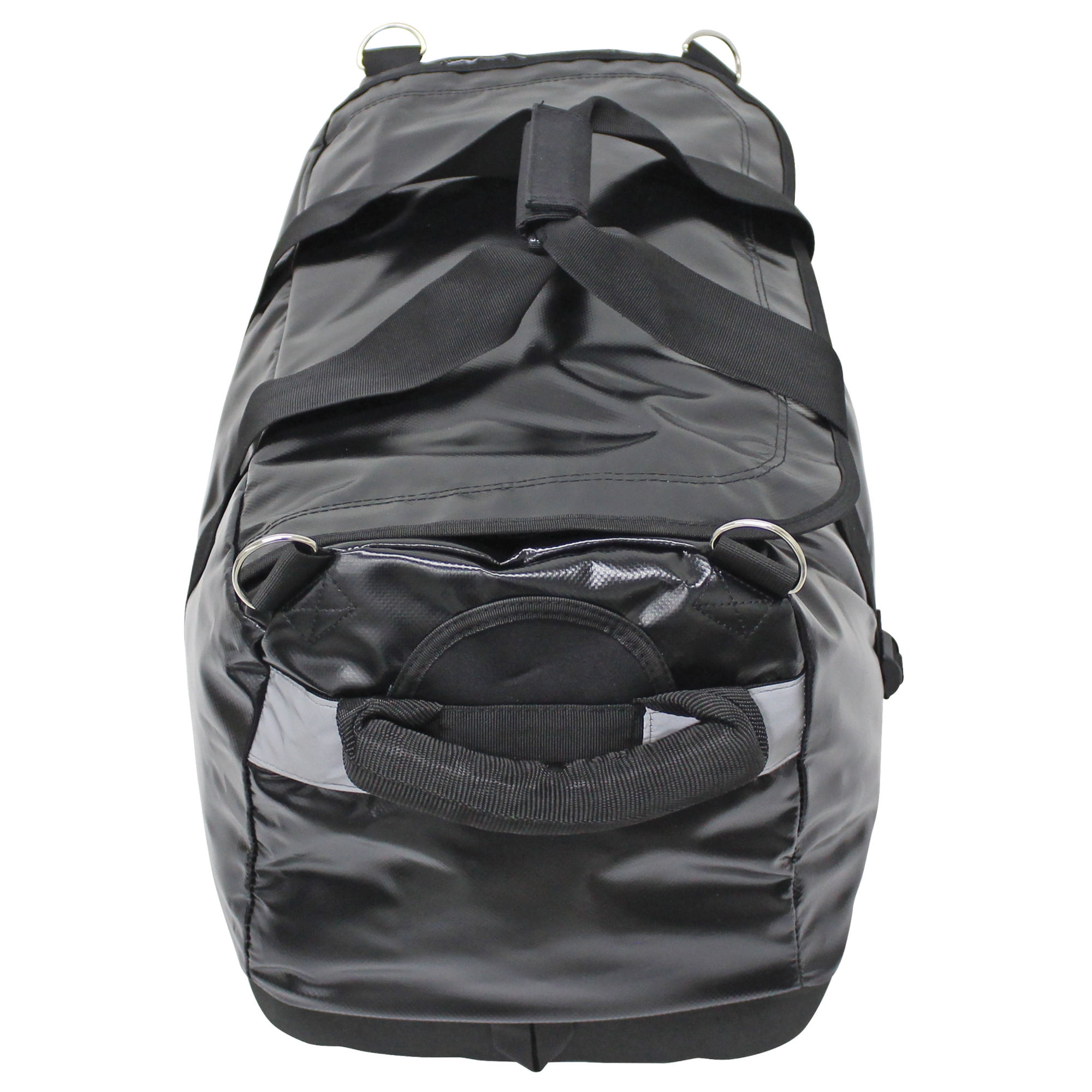 Zippered duffel bag made of polyester mesh laminated with PVC fabric to protect against water damage Molded EVA padded, reinforced bottom Features heavy-duty U zippers, side compression straps, padded strap handle, and detachable/adjustable shoulder strap For use in a variety of applications from boating to camping and hunting Two-year limited warranty