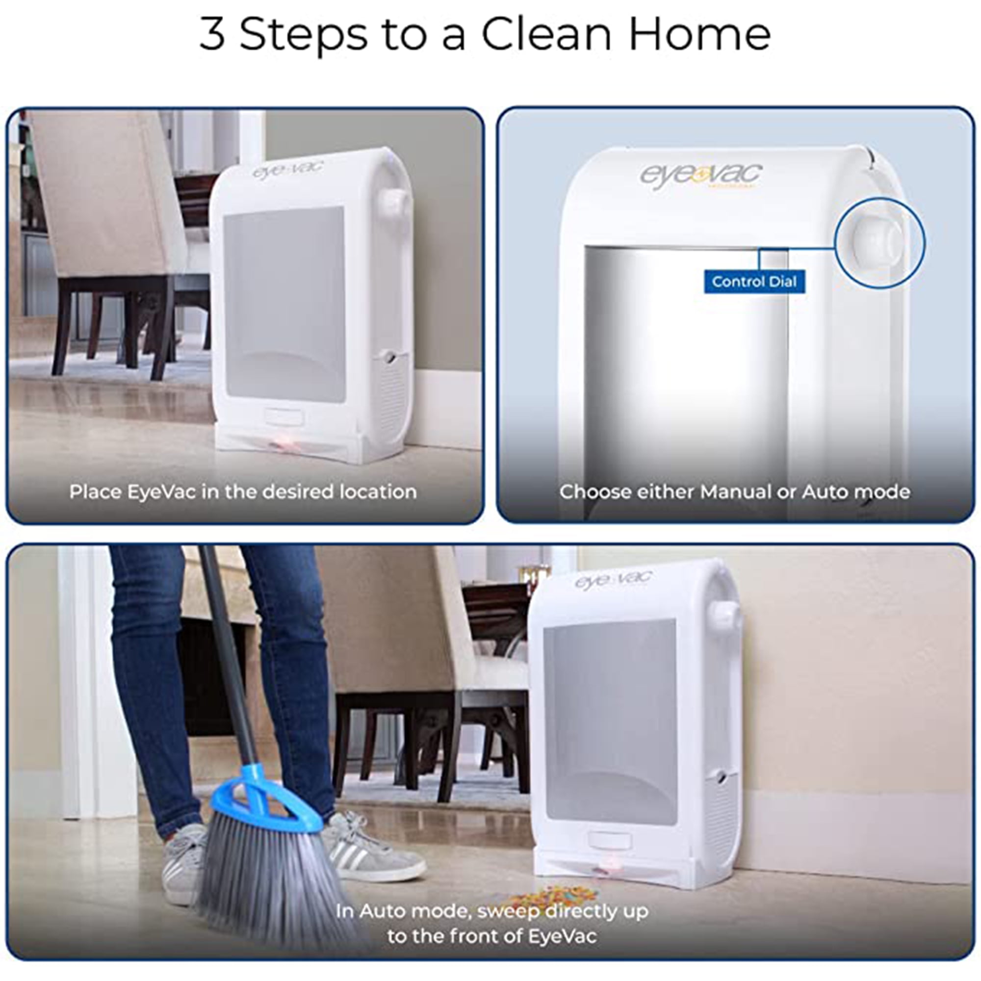 EyeVac Touchless Electric Stationary Pet Vacuum Hard Floor Cleaner, White