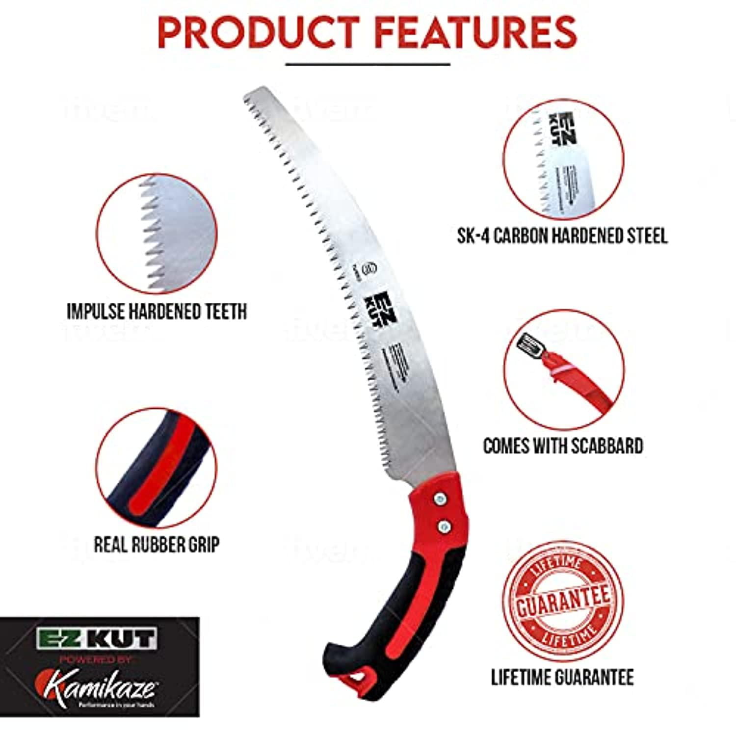 EZ Kut Kamikaze Max Saw Curved Blade with Scabbard – 19.3 Inch Heavy Duty Pruning Saw – Carbon Hardened Steel Japanese Technology- Best Pruning Saw for Tree Trimming & Branches – Made in Spain