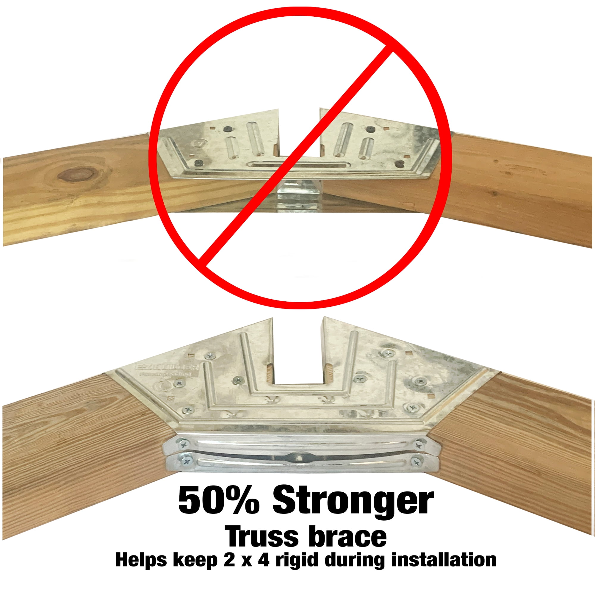 EZBUILDER Waterproof Wood DIY Storage Shed Kit with EZ Miter Template, 95″ x 96″ x 84″, Gray DIY framing kit allows you to create your own 7×8 foot storage shed frame with a peak roof design; wood and finish materials are NOT included Construct with wood or composite 2x4s and add your roofing and siding to match your home Multiple screw points and reinforced truss design provide superior strength to your frame No miters or complex measurements are needed; galvanized angle brackets create the perfect angle every time with only straight, 90-degree cuts required Galvanized steel base and angle brackets are 50 percent stronger and won’t rust or rot Build whatever size you need; 1 kit for a 7’x8’, 2 kits for 8’x10’, and 3 kits for a 10’x22’ Kit includes 24 steel angles, 12 steel baseplates, 4 door header brackets, EZ miter template, and easy-to-follow plans Dimensions (L x W x H): 96 x 84 x 95 inches