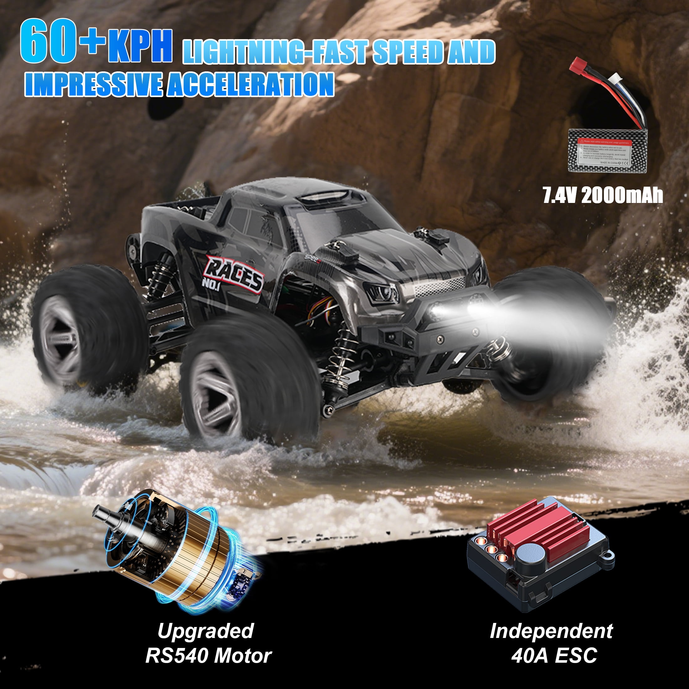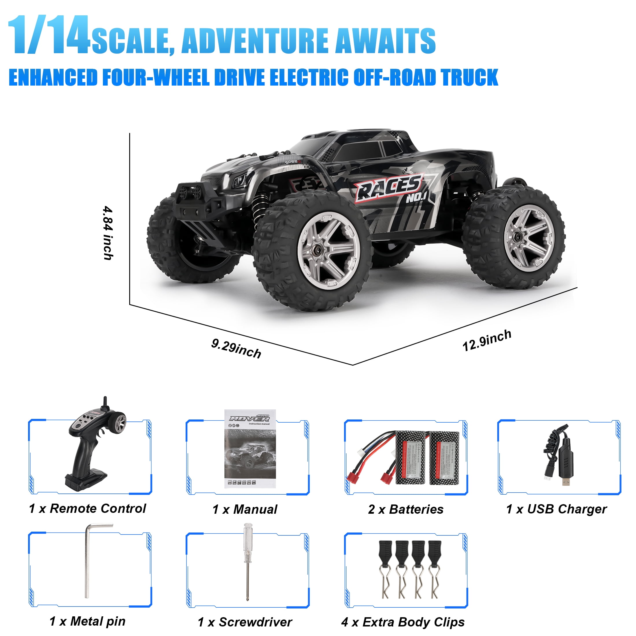 FAGINEY 1:14 RC Cars Truck 4WD Fast 45+ MPH Waterproof All-Terrain Off-Road Remote Control Car for Adults Boys, 2 Batteries