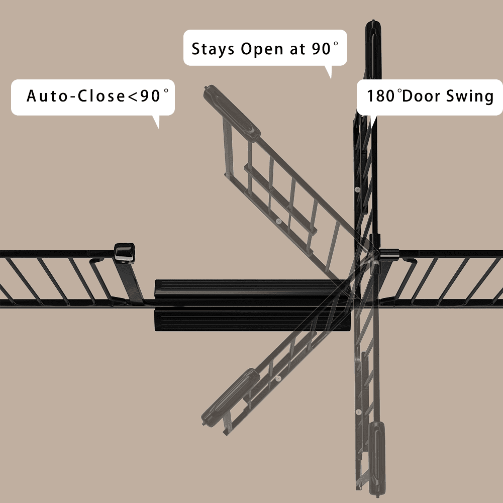 The Fairy Baby Baby Safety Gate with Cat Door is the perfect solution for families with both young children and pets. This extra wide pressure mount pet gate provides a secure barrier to keep your little ones safe from stairs, rooms, or other potentially hazardous areas of your home. Designed with convenience in mind, this black metal gate features a built-in cat door, allowing your feline friend to pass through easily while keeping larger pets and babies contained. The cat door ensures that your pets can still roam freely throughout the house without compromising the safety of your little one. With an adjustable width of 24″ to 29″, this baby safety gate fits a variety of openings, making it ideal for wide spaces such as hallways, doorways, or even between rooms. The pressure mount design eliminates the need for drilling or permanent installation, providing a hassle-free setup. Crafted from durable and sturdy materials, this puppy gate ensures long-lasting performance. The white metal finish adds a sleek touch to your home decor, seamlessly blending with any interior style. Ensure the safety of your children and pets with the Fairy Baby Baby Safety Gate with Cat Door. Its versatility, easy installation, and reliable construction make it a must-have product for every pet-loving household.