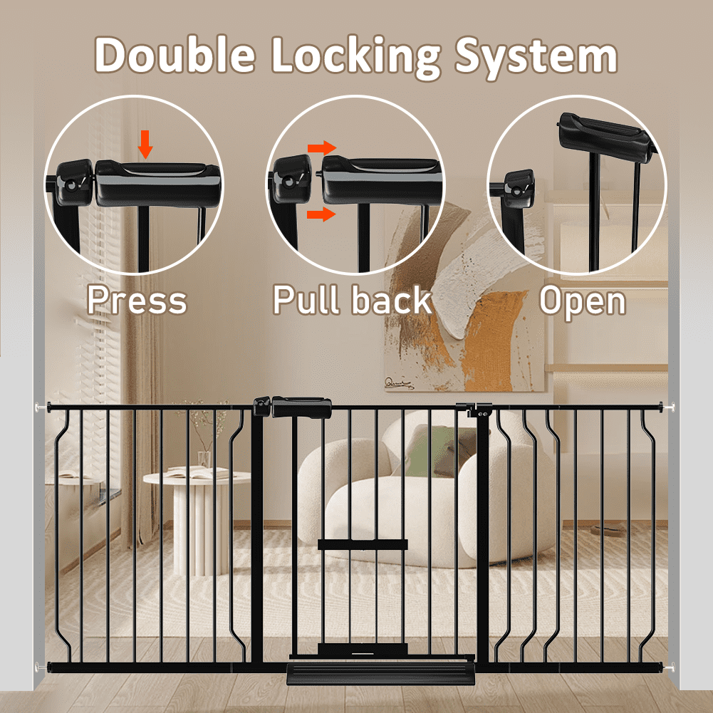 Provides a secure barrier to keep children and pets safe from potentially hazardous areas Features a built-in cat door for easy access for feline friends while keeping larger pets and babies contained Adjustable width of 24″ to 29″ to fit a variety of openings Pressure mount design eliminates the need for drilling or permanent installation Crafted from durable and sturdy materials for long-lasting performance Versatile, easy installation, and reliable construction make it a must-have product for pet-loving households.