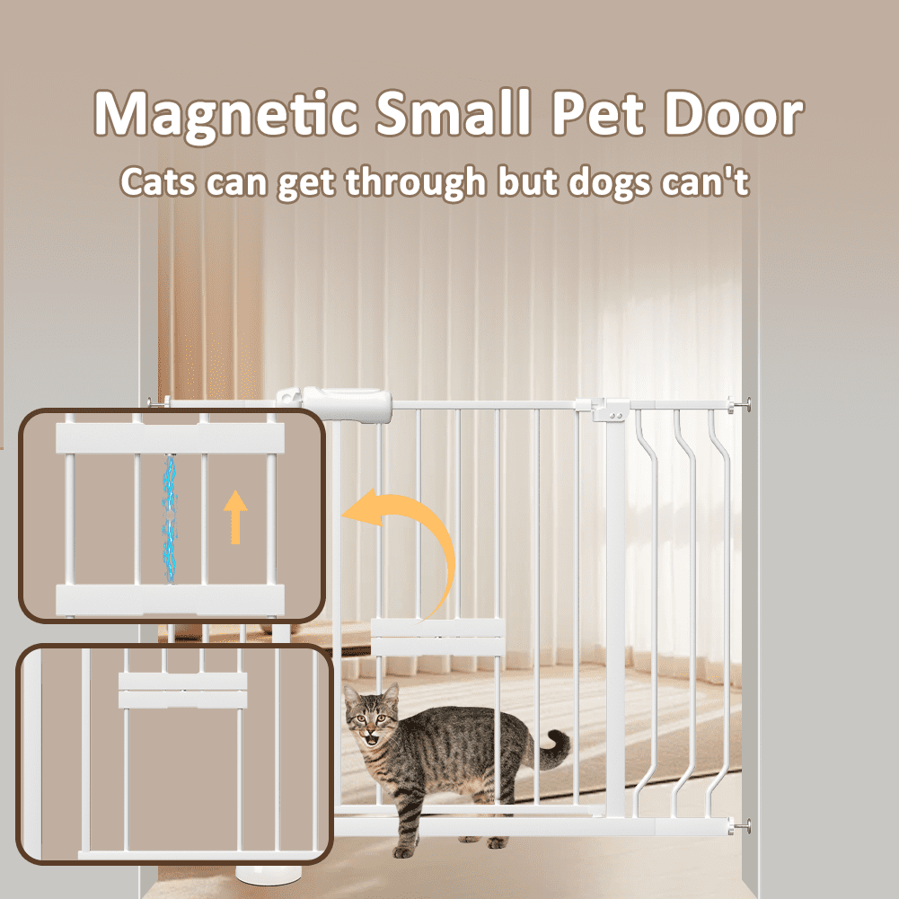 Fairy Baby Baby Safety Gate with Cat Door,24″-29″ Extra Wide Pressure Mount Pet Gate White Metal
