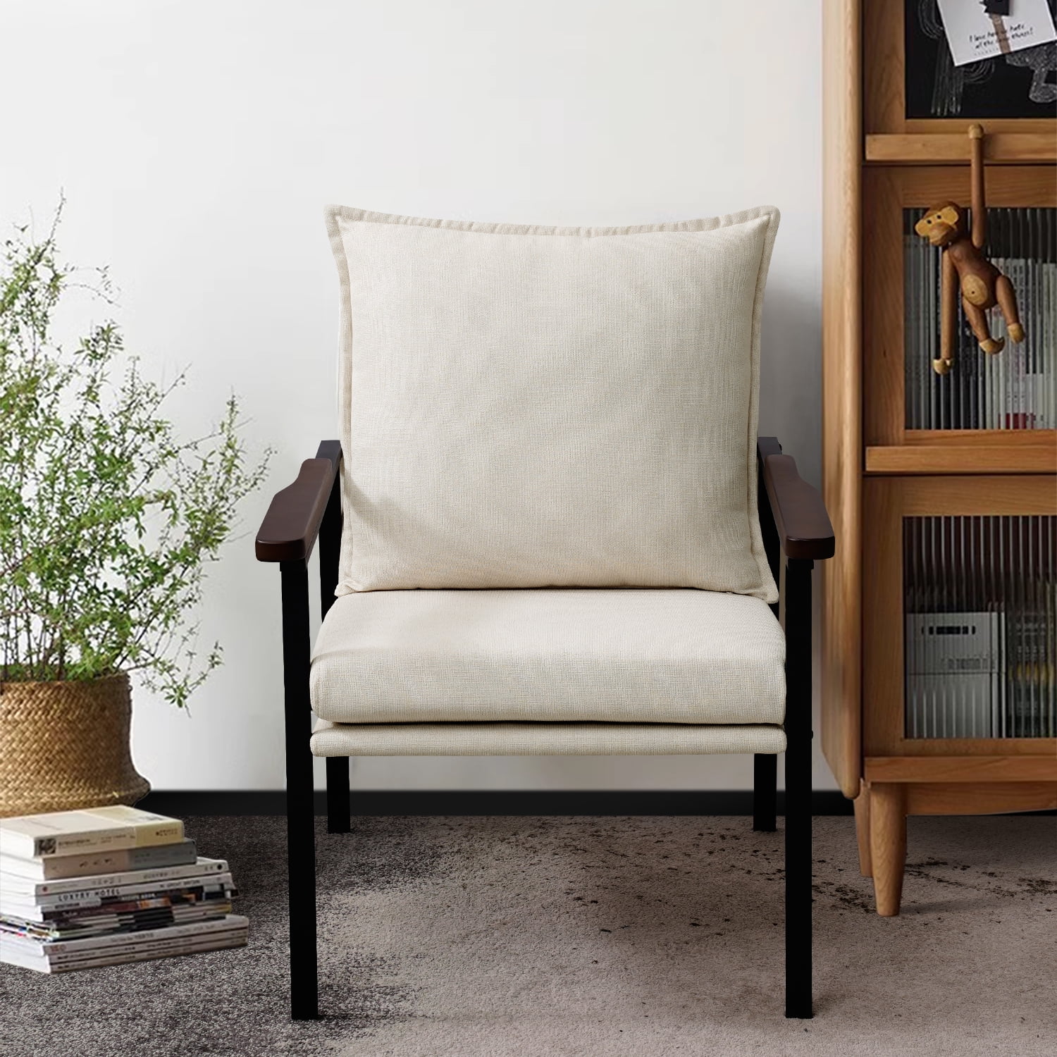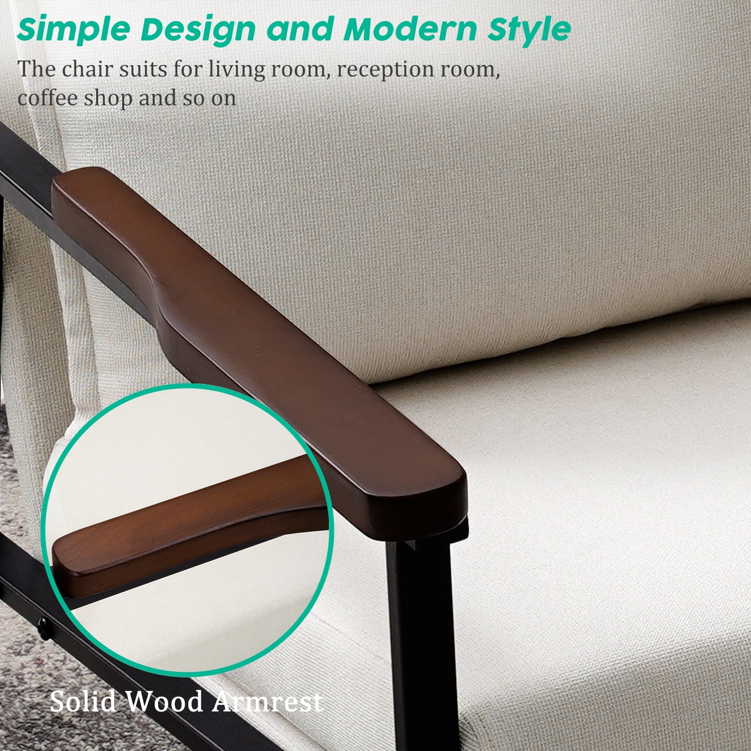 Modern&Fashable Looking: Designed with simple and modern style, the cute chair not only delights your favorite spaces,but also is pratically daily use!It is a good choice for living room, reception room, office and bedroom! Seat size: 22″W×26.37D. Legs height from floor to seat:18.11″. Strong Metal Frame& Solid Wood Armrest: Finished with strong metal, the living room chair is sturdy and ensures longer use time. Weight Capacity:220LBS. Brown solid wood armrest is better looking and comfort comparing with metal armrest. Removable Cushion&Detachable Cover: The back cushion and seat cushion can be removable if necessary. The durable fabric cover that is skin-friendly and pet-friendly can be detachable for daily cleaning. Clean methods: Spot cleaned by detergent and hand wash! Ergonomic Design & Comfortable Backrest: Considering many chairs on market may hard to sit because the backrest can’t be adjust angle and it isn’t high enough for someone, we update the backrest that is high density cotton to support back and the angle can be ajustable to meet your needs. Feel comfortable to sit, and enjoy your leisure time! Easy to Install: Following the instuction to install the accent chairs steps by steps, you only need 10-15 mins to finish installtion and get a stylish living room chairs. Buy with confidence: Please feel free to email us if you meet any problem, and we do promise that we try our best to solve your problem!