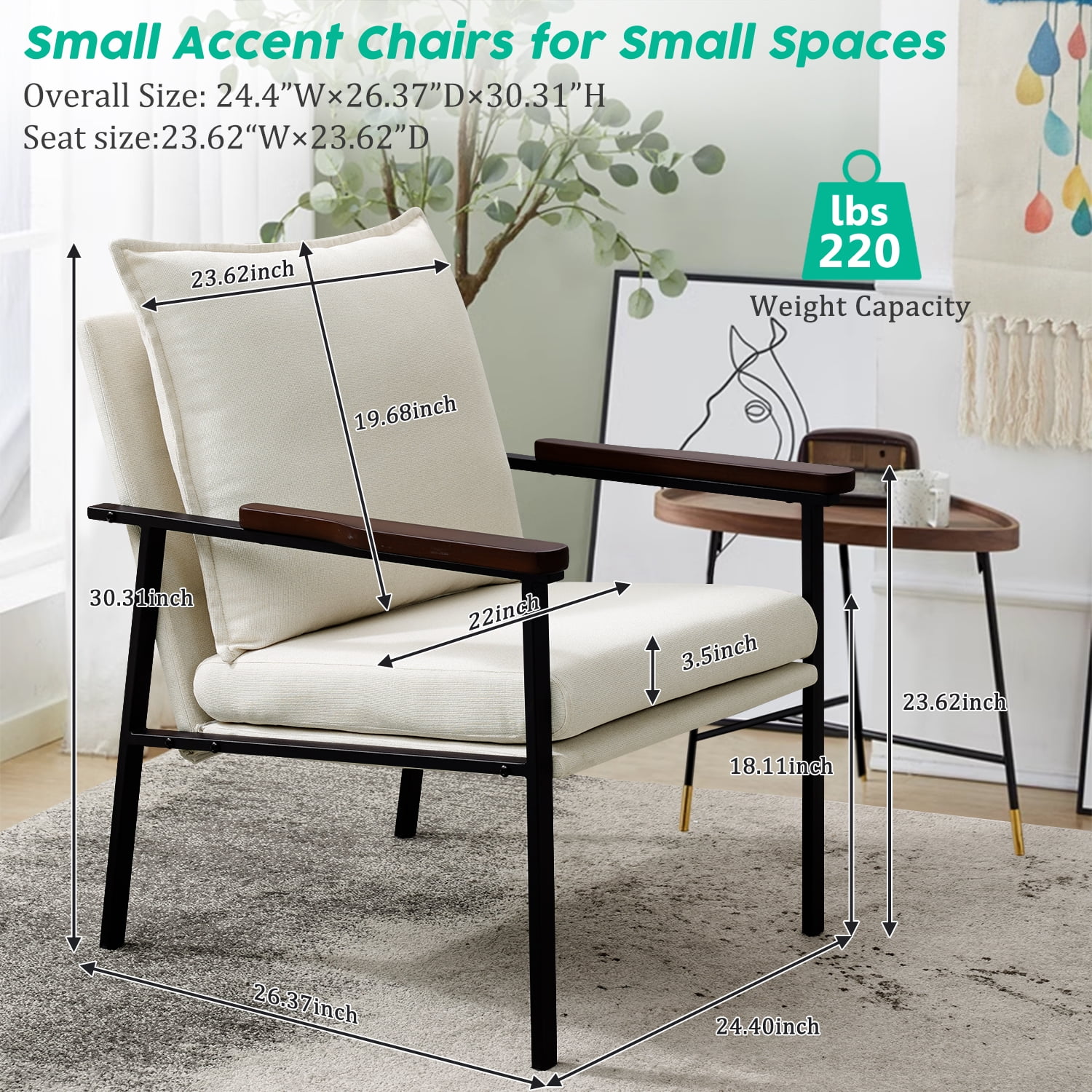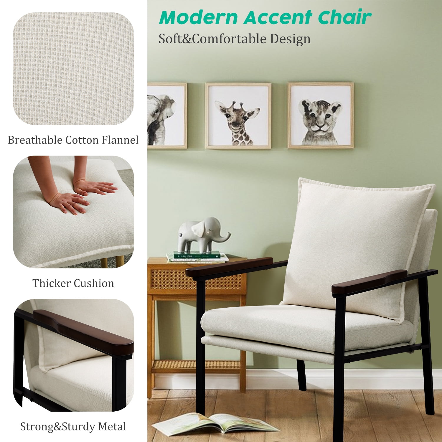 Fairyland Linen Fabric Modern Accent Chair with Metal Frame, Upholstered Club Chair, Clearance Arm Chair for Small Space and Office, Beige