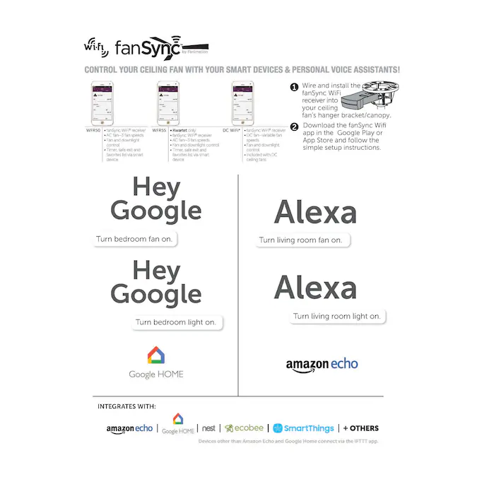 - Technology: WiFi fanSync and Correlated Color Temperature (CCT) Select Technology