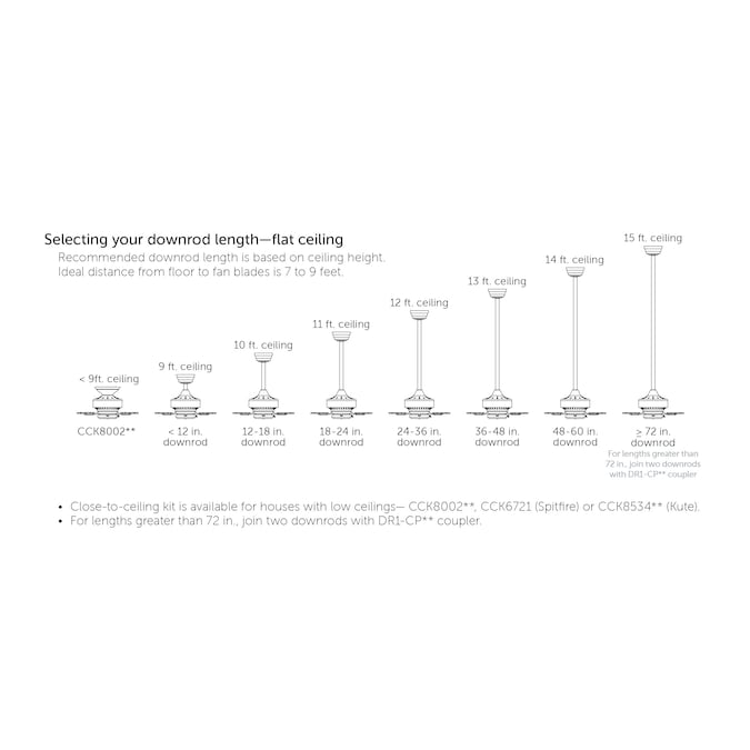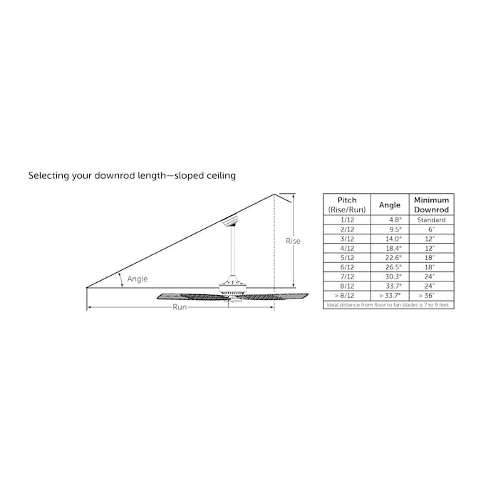 - INSTALLATION: Mounts to flat or minimally sloped ceilings with the included 1-in diameter x 4.5-in length downrod – Optional downrods are available in lengths up to 72 inches to adjust the fans height to 7ft – 9ft from the floor, ensuring maximum airflow